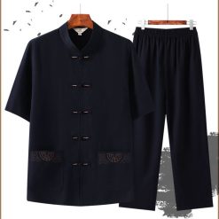 Bộ cư sĩ nam cổ trụ dài tay được may từ vải linen Hàn Quốc cao cấp, mang lại cảm giác mềm mại, thoáng mát và nhẹ nhàng khi mặc. Thiết kế cổ trụ thanh lịch cùng hàng nút cài giữa ngực giúp bộ trang phục vừa trang nghiêm, vừa hiện đại, phù hợp cho Phật tử nam khi tham gia các hoạt động tu học, hành lễ, tọa thiền hoặc sinh hoạt tại chùa.