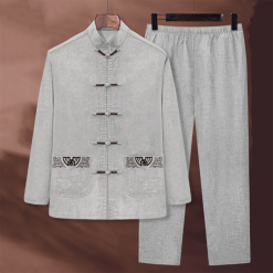 Bộ Cư Sĩ Nam Cổ Trụ Dài Tay – Vải Linen Hàn Quốc Màu Xám, Size S, M, L, XL