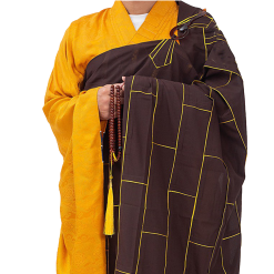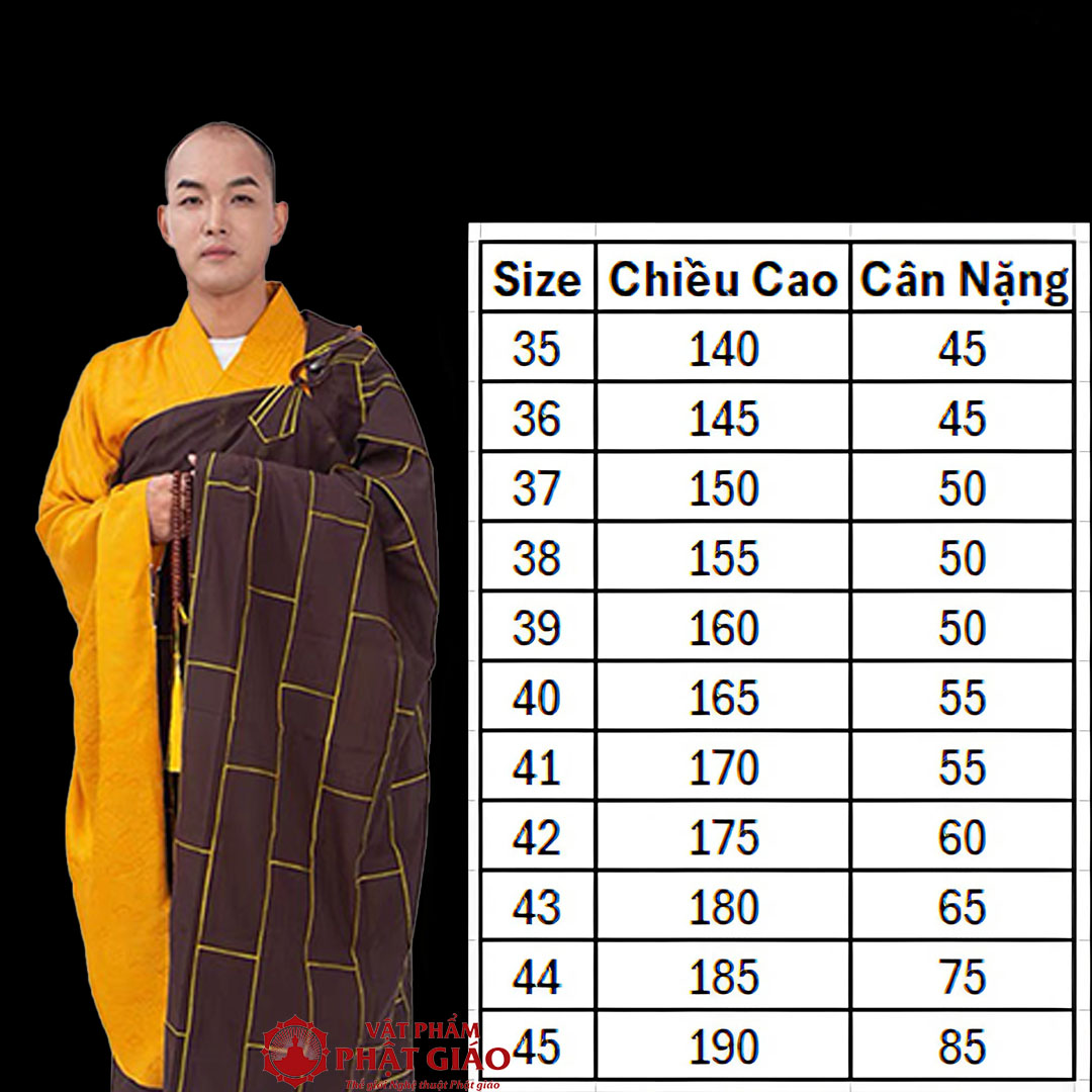 Sản phẩm được may từ chất liệu vải cao cấp, bề mặt mềm mịn, thoáng mát, nhẹ và rũ đẹp. Màu nâu cà phê trầm ấm kết hợp đường viền chỉ vàng tinh tế tạo nên vẻ ngoài vừa trang nghiêm vừa gần gũi, đồng thời thể hiện tinh thần khiêm cung, giản dị của người tu hành.