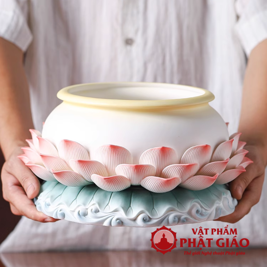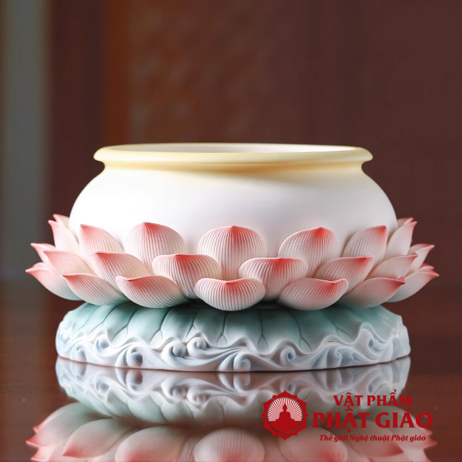 Bát Hương Gốm Sứ Hoa Sen Nở Đế Lá Sen Vân Mây