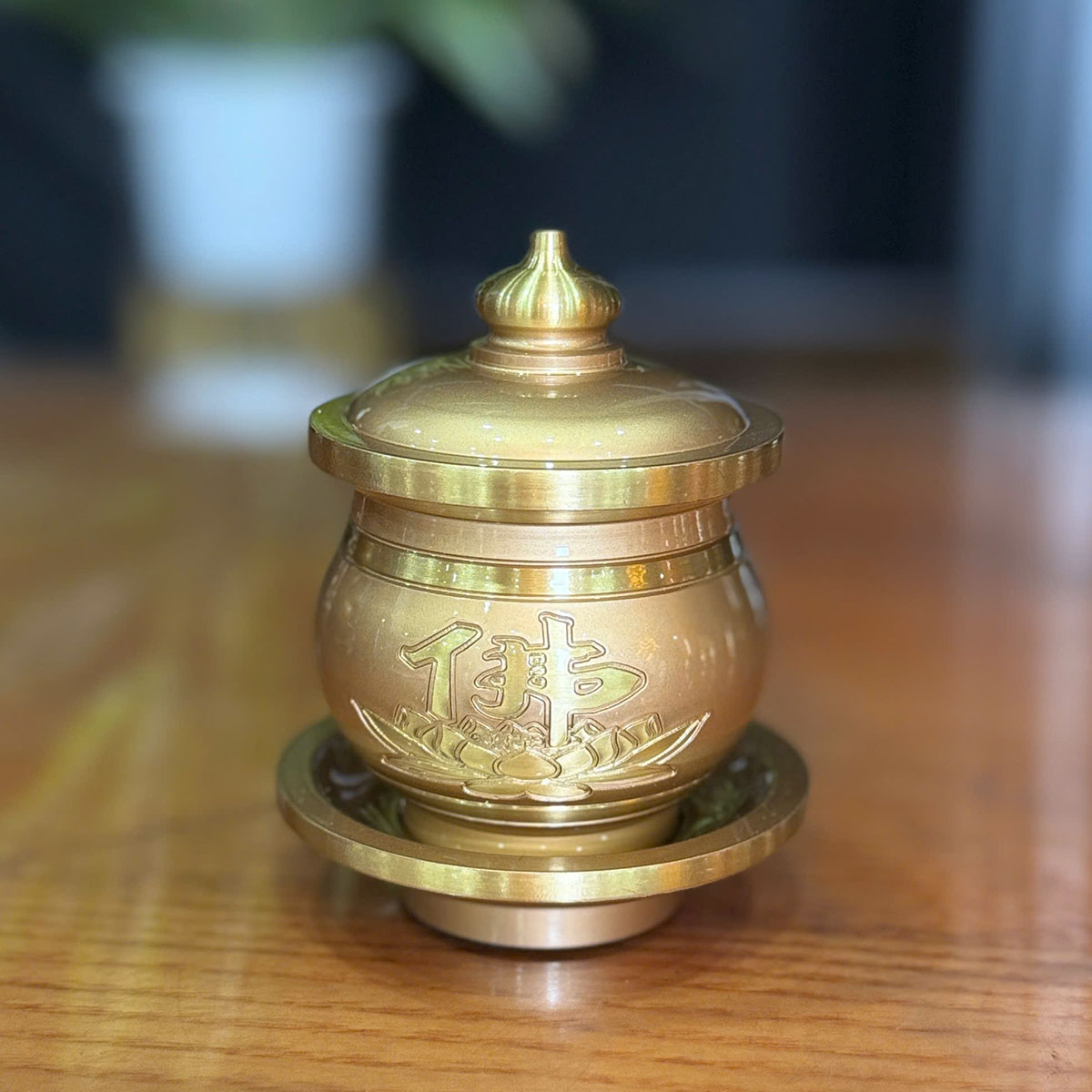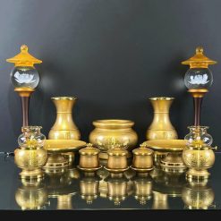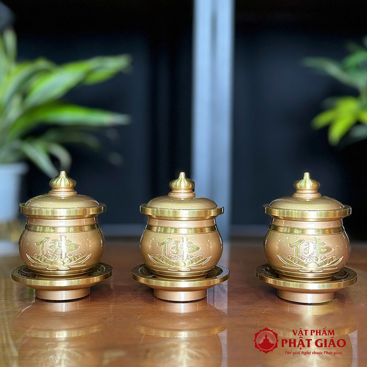 Bộ Đồ Thờ Hoa Sen Chữ Phật Đồng Vàng