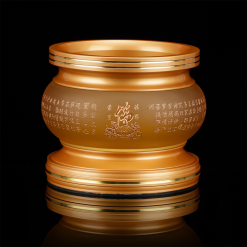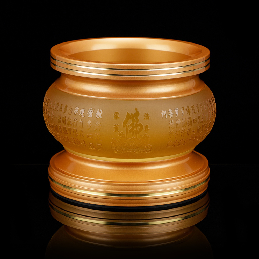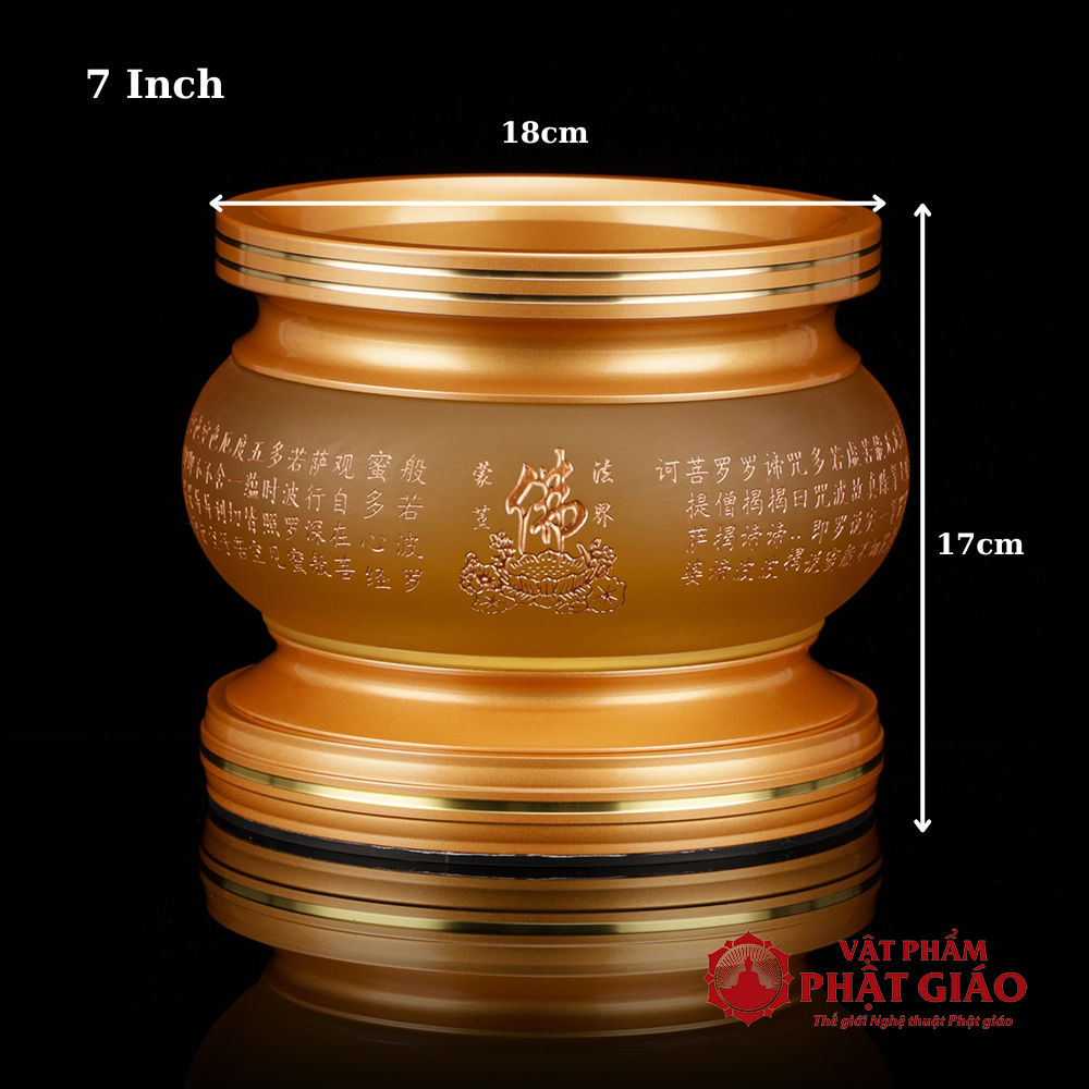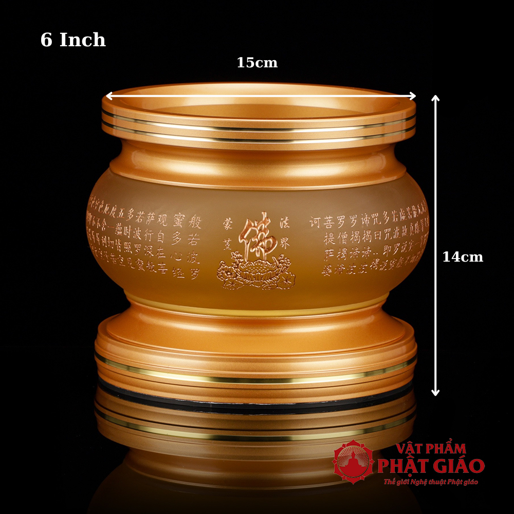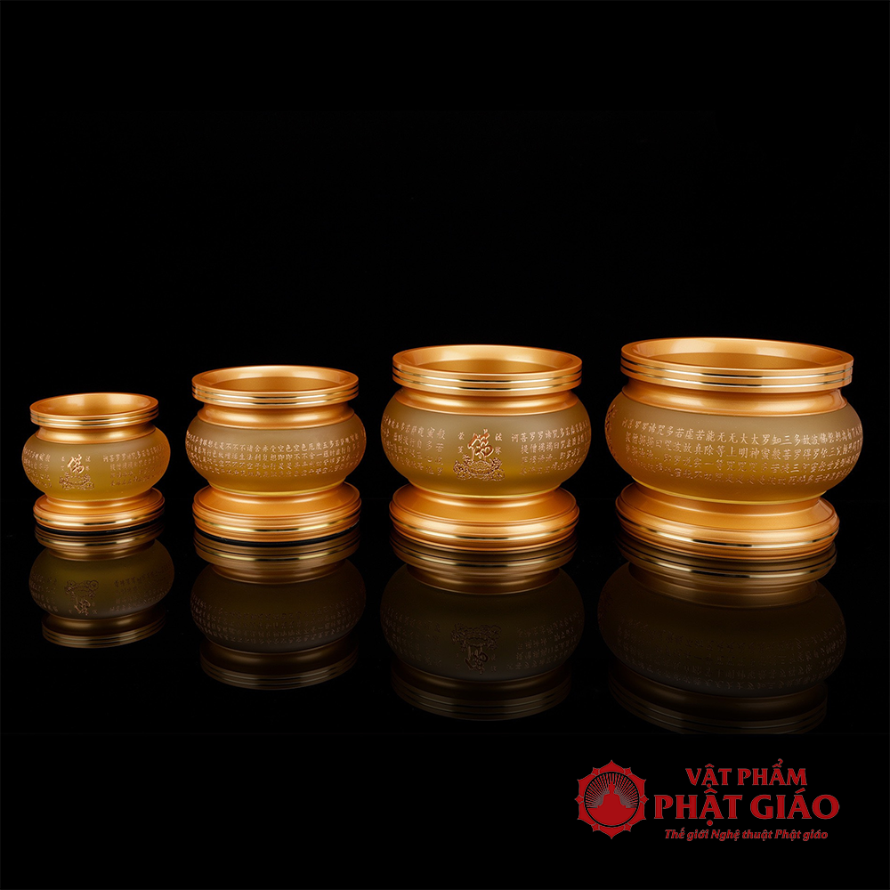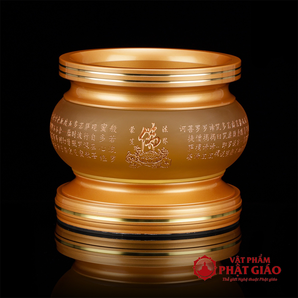 Bát Hương Lưu Ly Tâm Kinh Viền Thẳng, Khắc Chìm Hoa Sen Chữ Phật Vàng, Nhiều Kích Cỡ