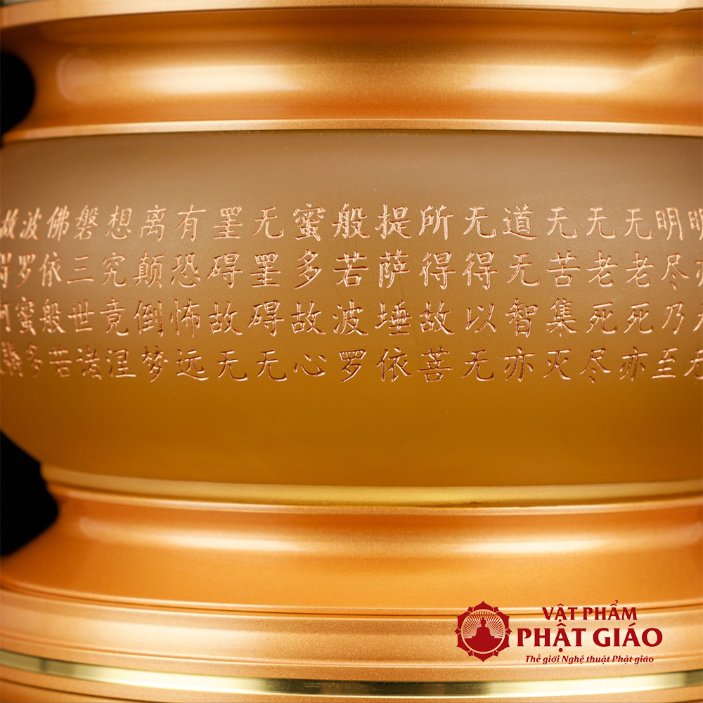● Họa tiết: Khắc chìm Tâm Kinh Bát Nhã, hoa sen và chữ “Phật”