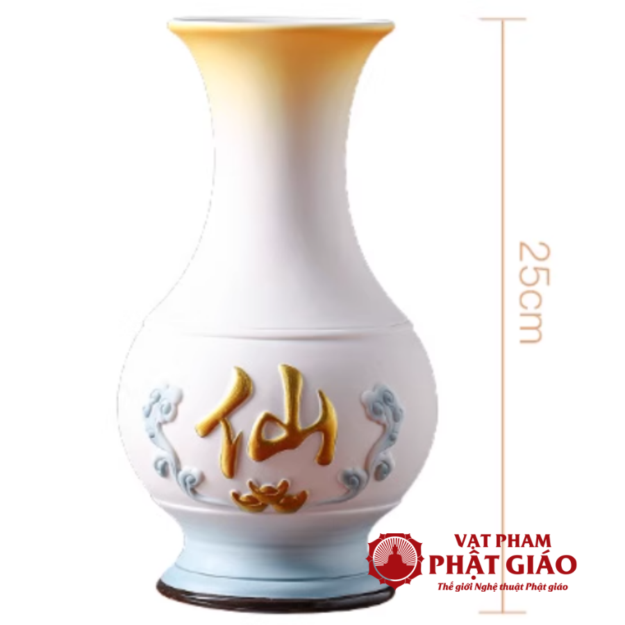 - Thiết kế cao 25cm vừa đủ, dáng thon dễ cắm hoa sen, hoa huệ, hoa cúc… giúp không gian thờ luôn thanh thoát và trang nhã.