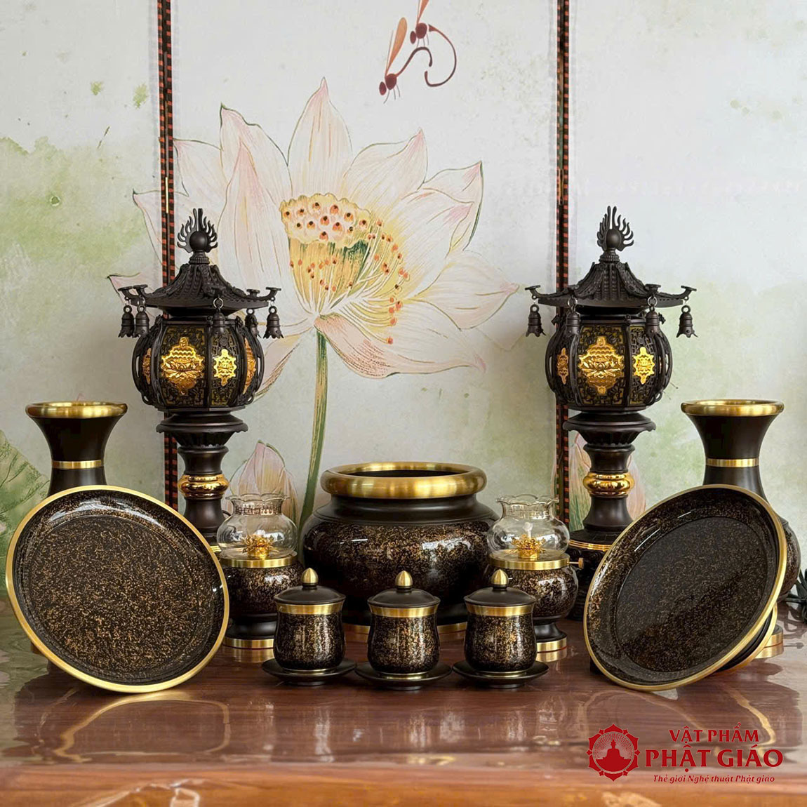 Bộ Đồ Thờ Đồng Đen Vân Đá Sần Cao Cấp
