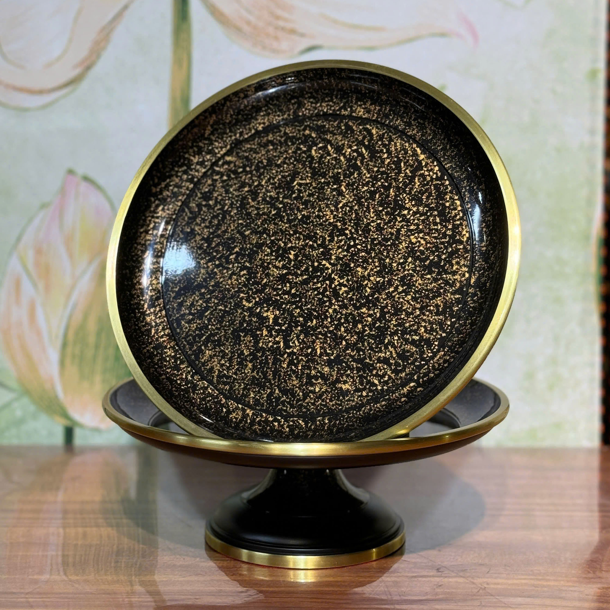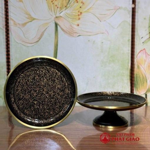 Đĩa Thờ Chất Liệu Đồng Đen Vân Đá Viền Vàng Cao Cấp