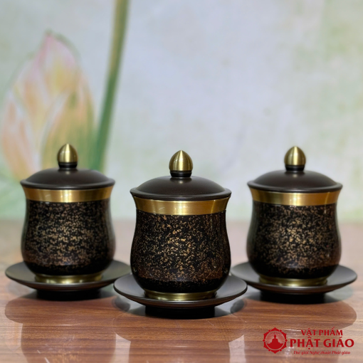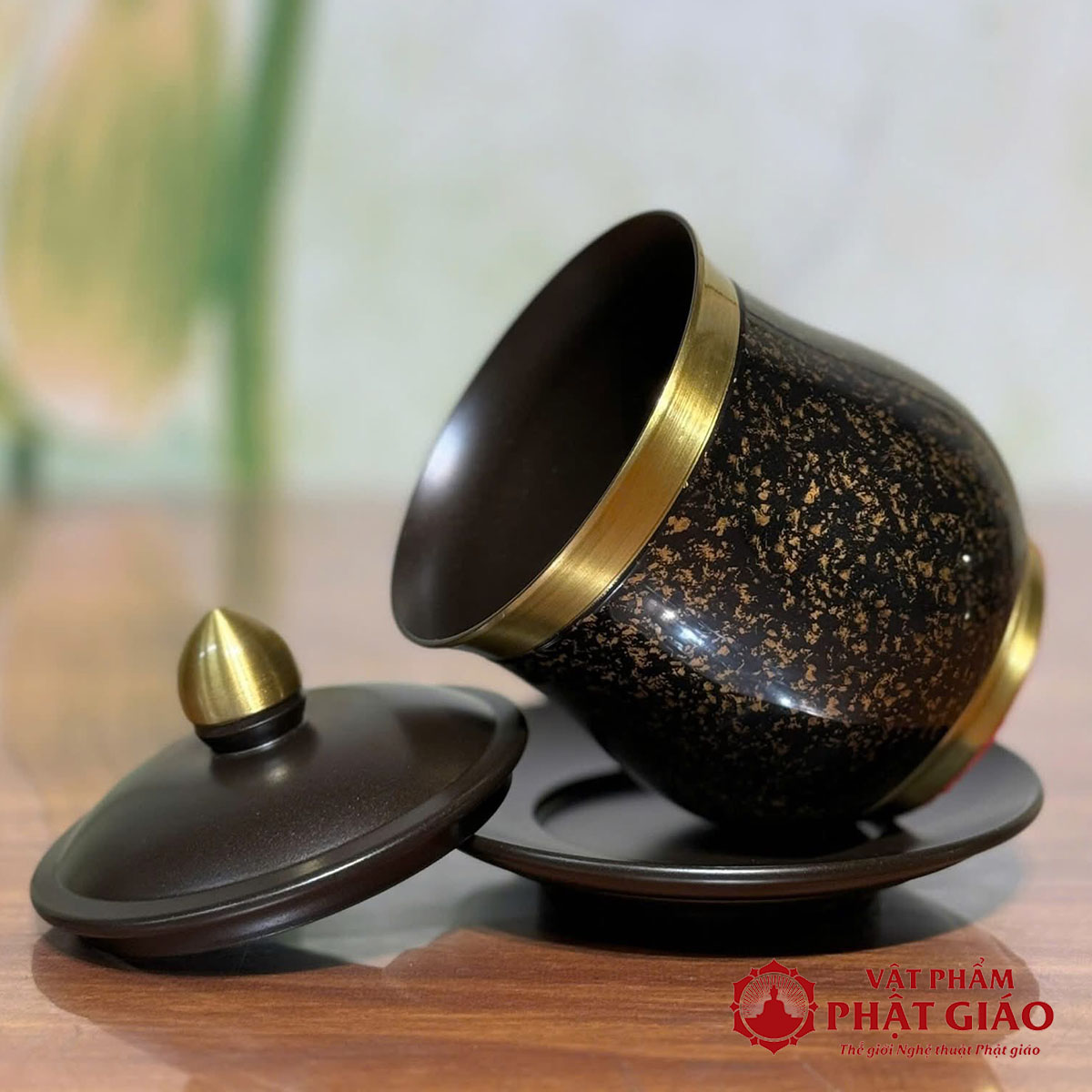Chén Nước Thờ Bằng Đồng 2 Màu Họa Tiết Vân Đá