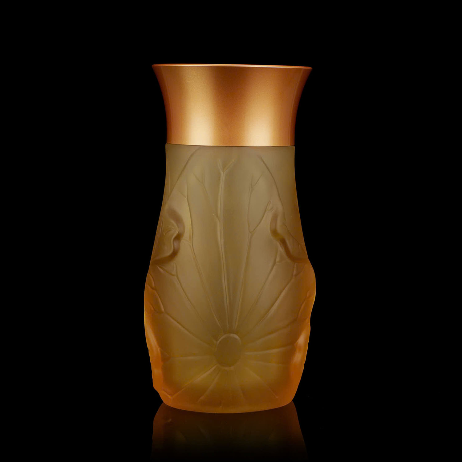 Lọ Hoa Thờ Cúng Bằng Lưu Ly Lá Sen Miệng Đồng Vàng, Cao 20cm