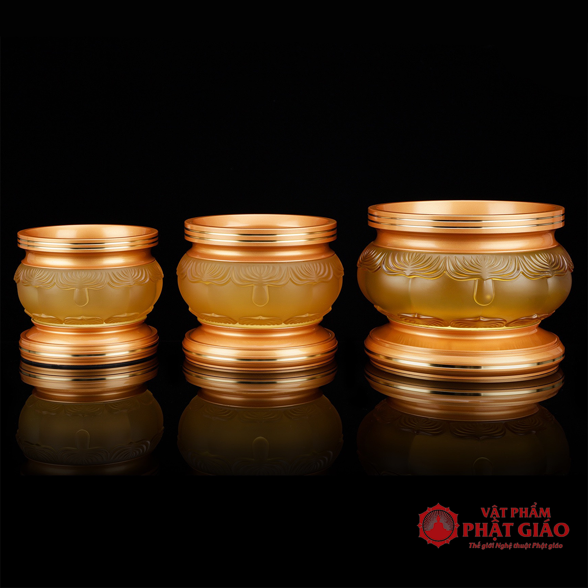 Chén Nước Thờ Lưu Ly Bọc Đồng Vàng Viền Hoa, Nhiều Kích Cỡ
