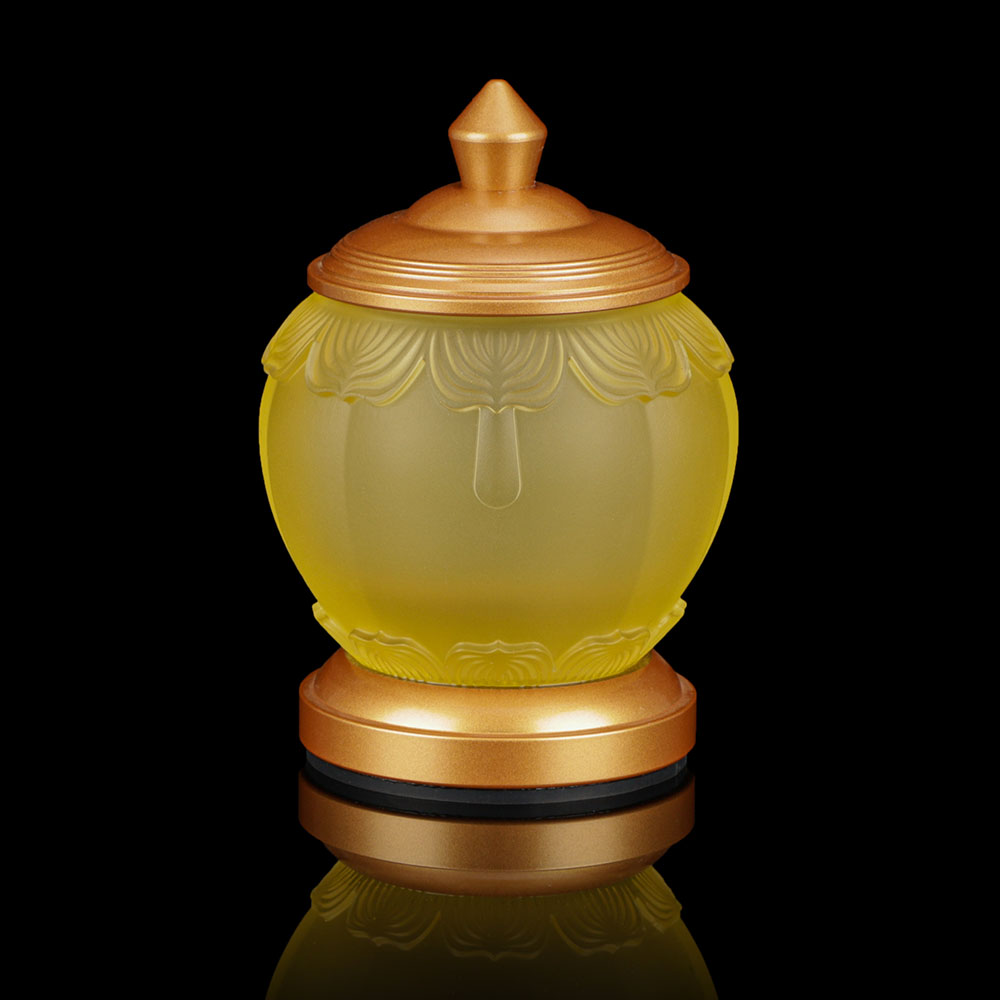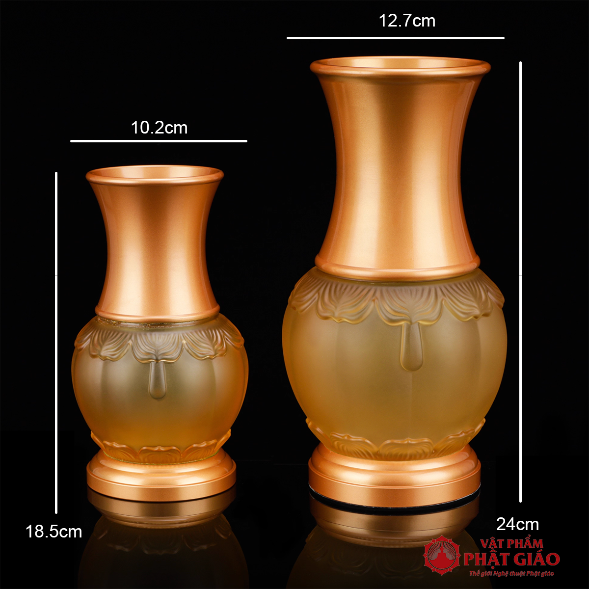 Lọ Hoa Thờ Cúng Bằng Lưu Ly Viền Hoa Bọc Đồng Vàng, Nhiều Kích Cỡ