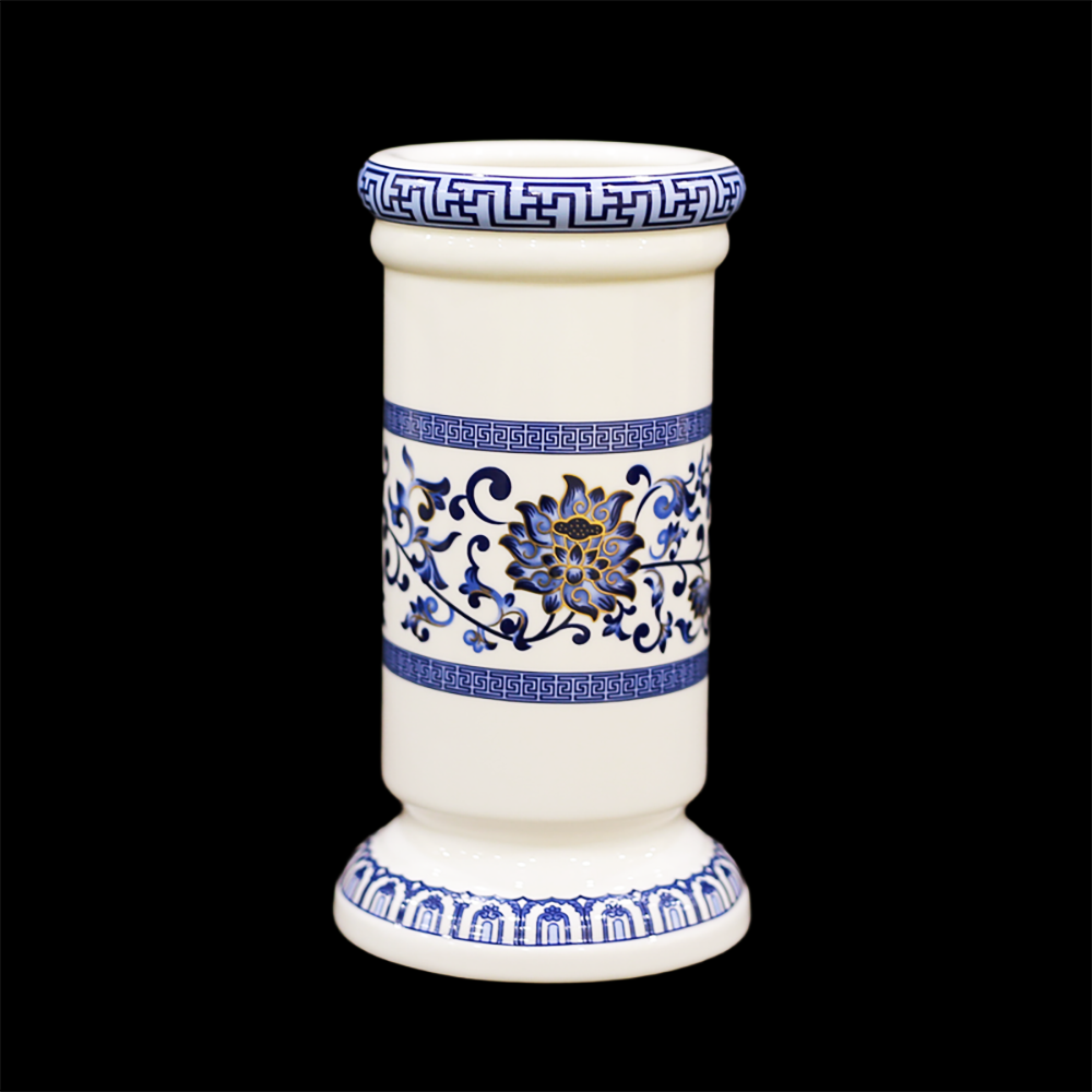 Ống Đựng Hương Sứ Trắng Hoa Sen Màu Lam, Cao 20cm