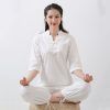 Bộ Quần Áo Cư Sĩ Nữ Màu Trắng Vải Cotton, Quần Áo Phật Tử Nữ Đi Lễ Chùa Trang Nhã Thanh Lịch