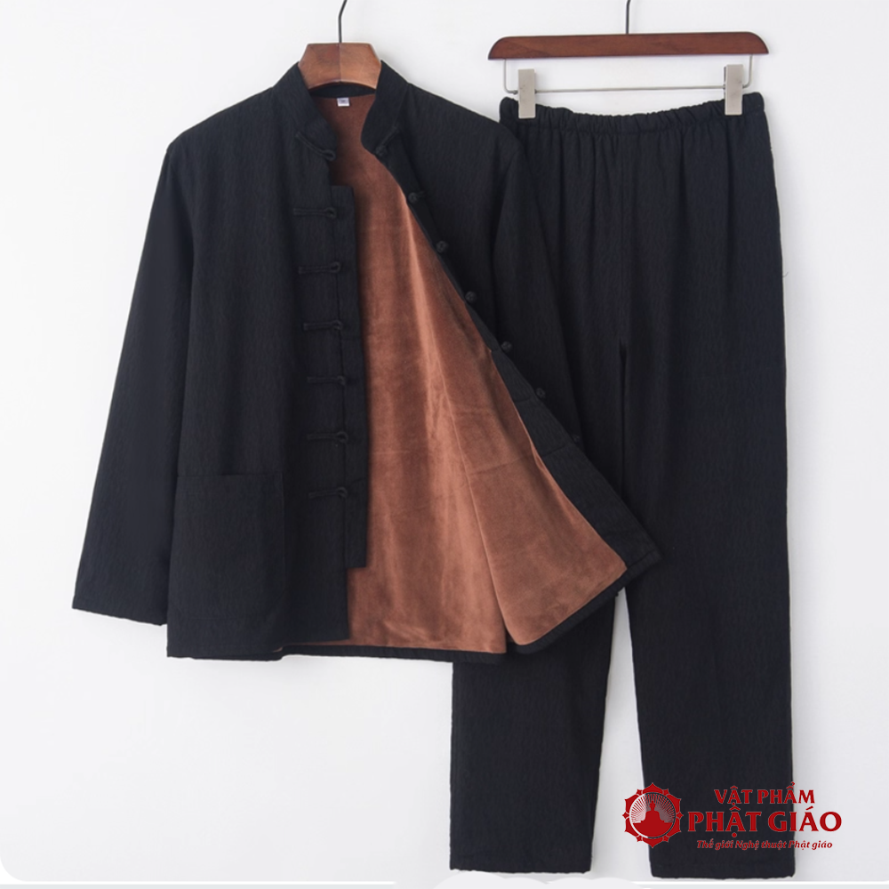 Bộ Quần Áo Mùa Đông Lót Lông Của Nam – Pháp Phục Cư Sĩ, Phật Tử Nam Màu Đen