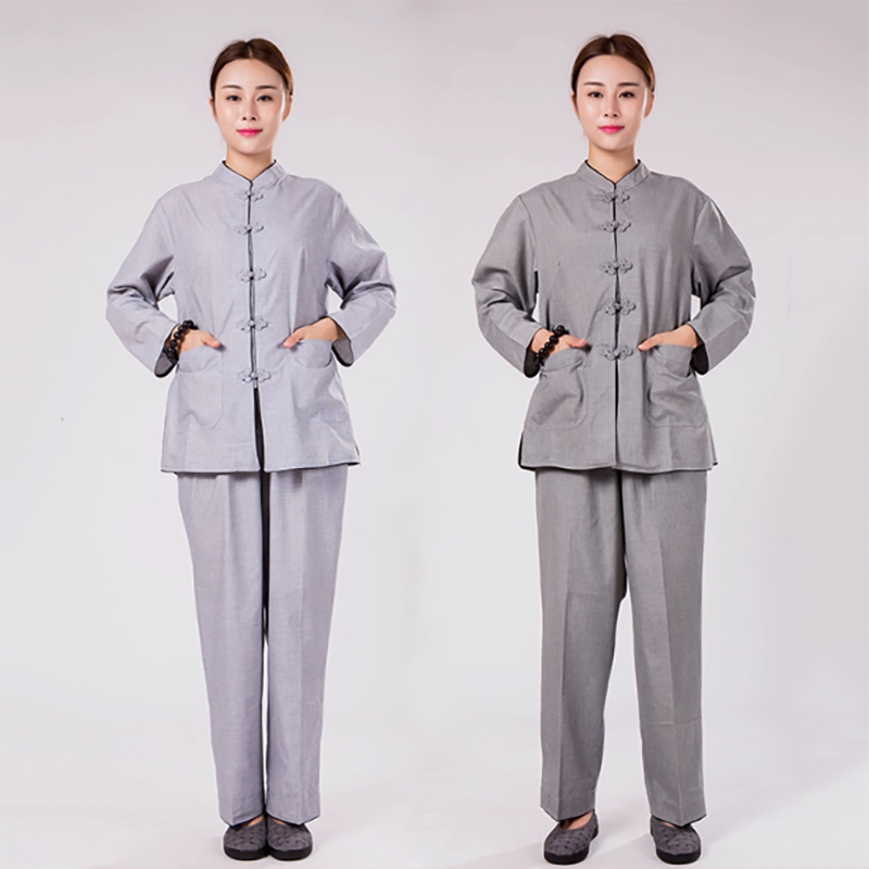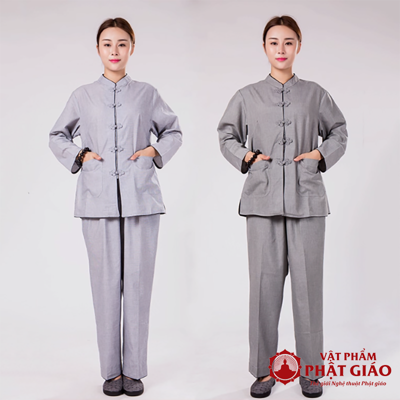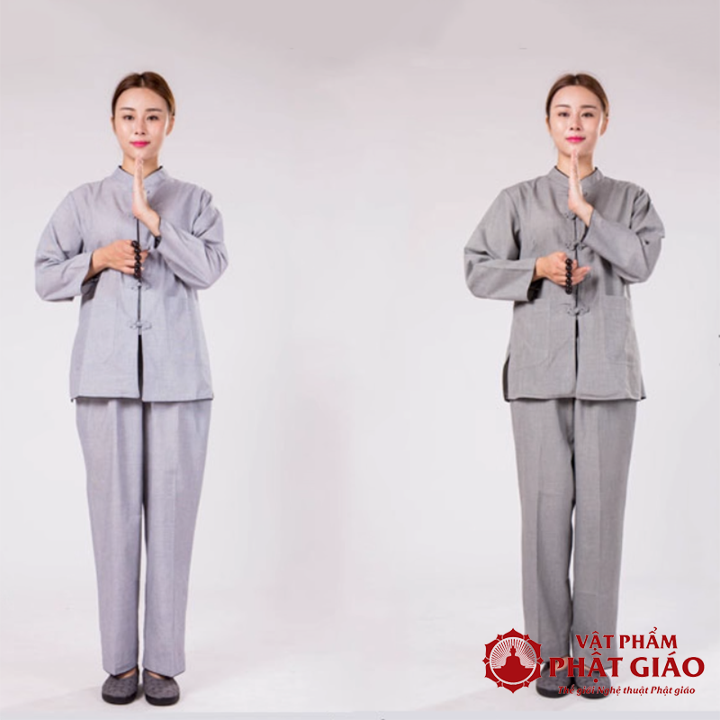 Bộ Quần Áo Nữ Phật Tử, Cư Sĩ Dài Tay Vải Xô Màu Xám Đậm, Xám Nhạt