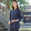 Thiết kế: Cổ liền 1 nút, tay lửng, form suông giúp cử động dễ dàng; quần ống rộng thoải mái khi đi lại hoặc ngồi thiền.