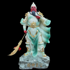 Bộ Tượng Quan Công – Vi Đà Tôn Thiên Hộ Pháp Đứng, Composit Sơn Cao Cấp Đỏ, Cao 25cm