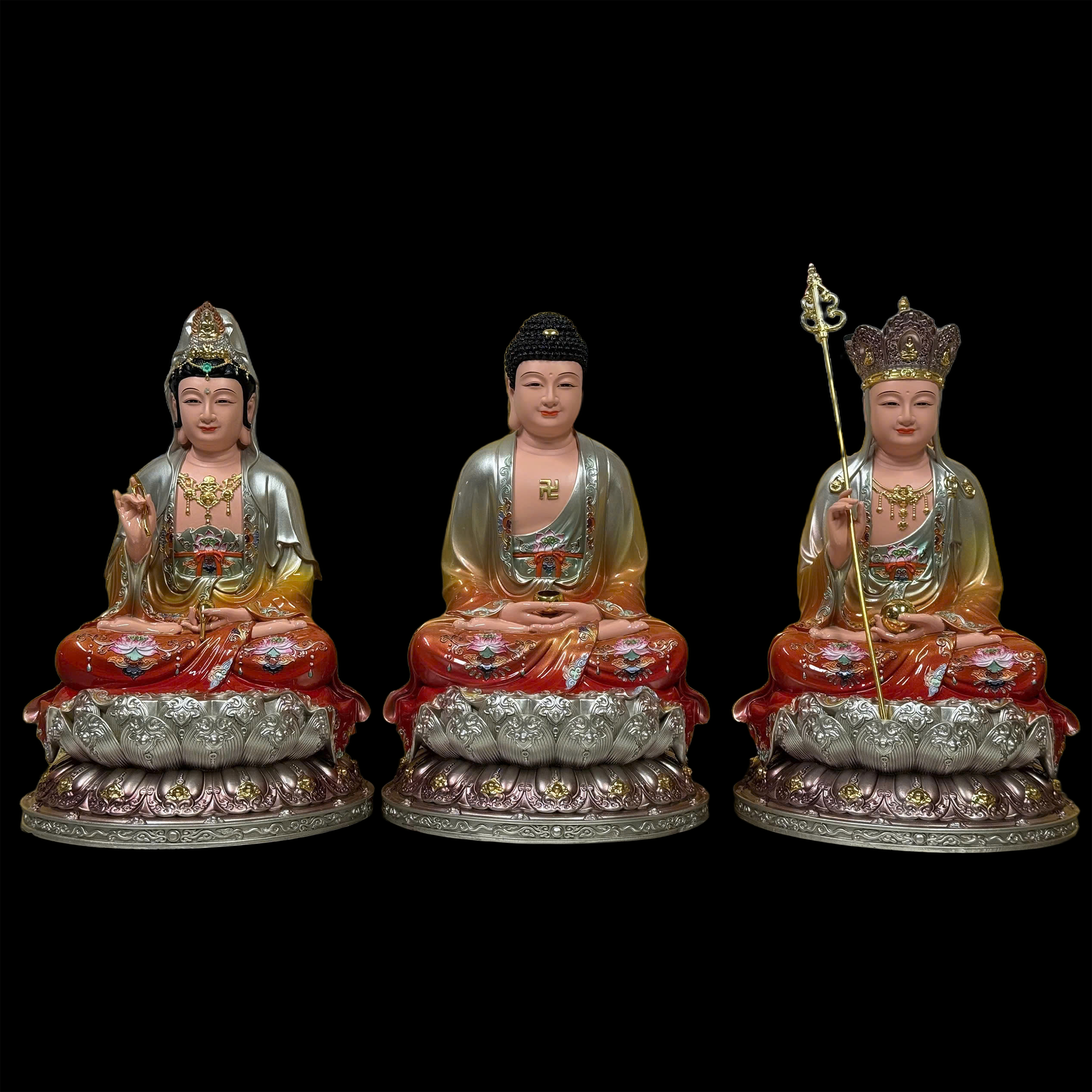 Bộ Tượng Ta Bà Tam Thánh Bằng Composite, Cao 30cm, 40cm