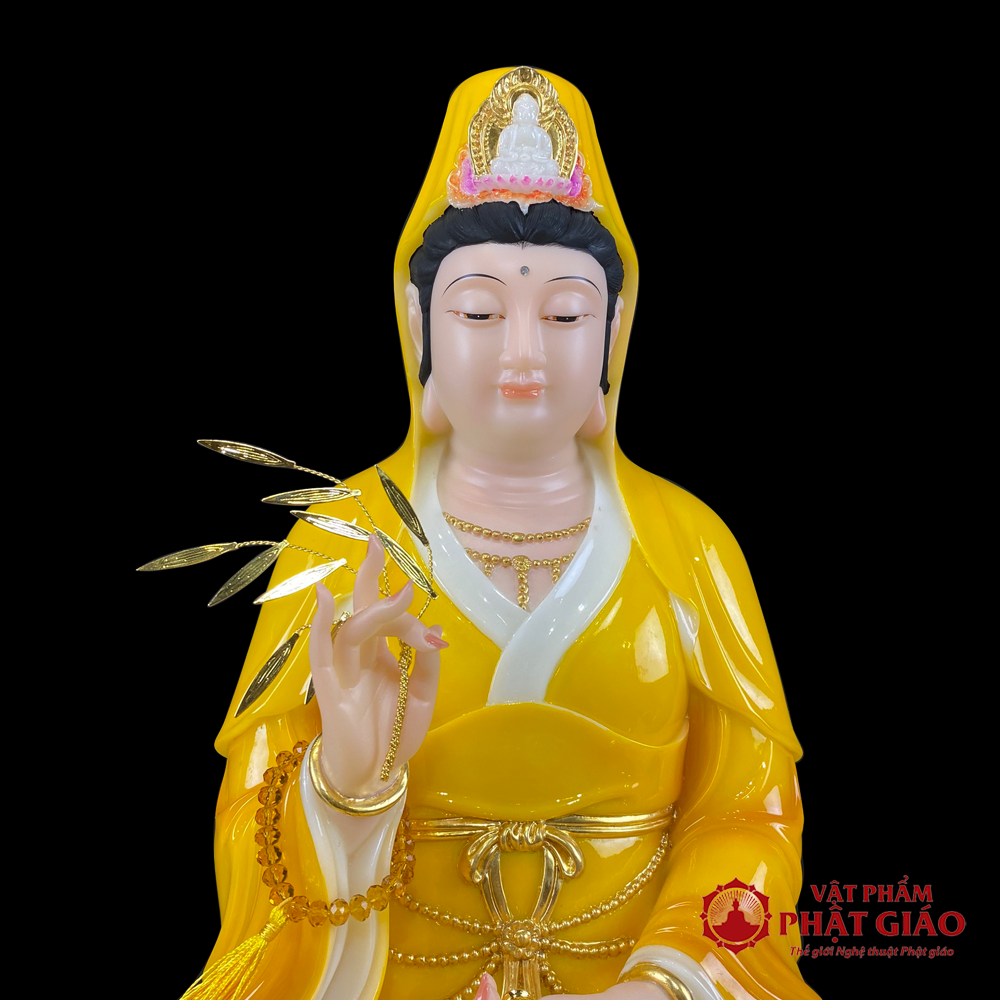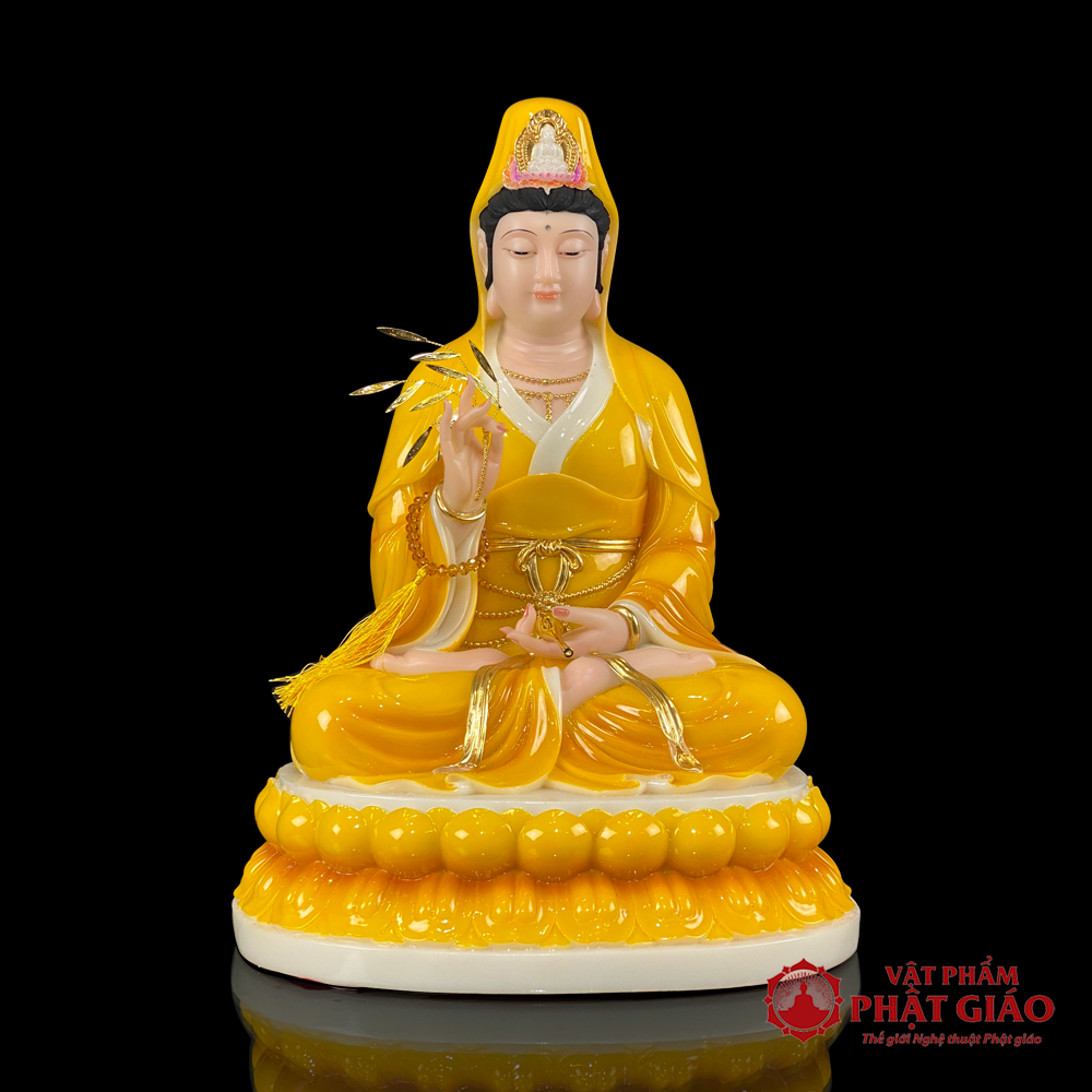Bộ Tượng Ta Bà Tam Thánh Bột Đá Hổ Phách, Cao 30cm, 35cm, 40cm, 48cm