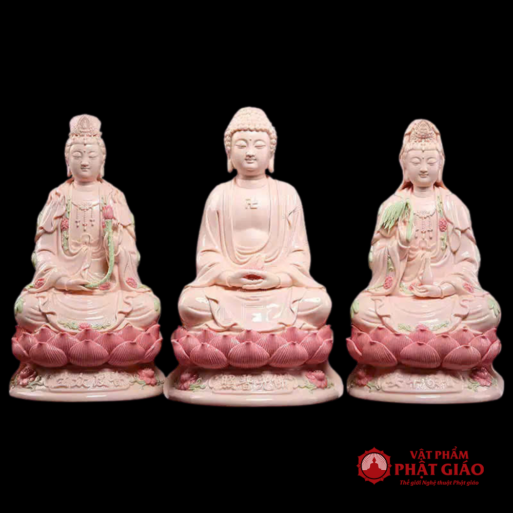 Bộ Tượng Tây Phương Tam Thánh Sứ Hồng 28cm