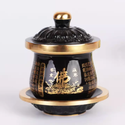 Chén Nước Thờ Bằng Đồng Màu Đen In Chữ Phật Tâm Kinh