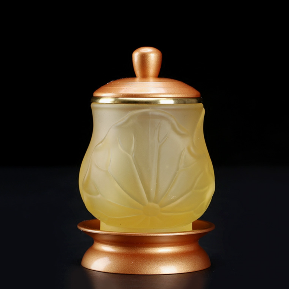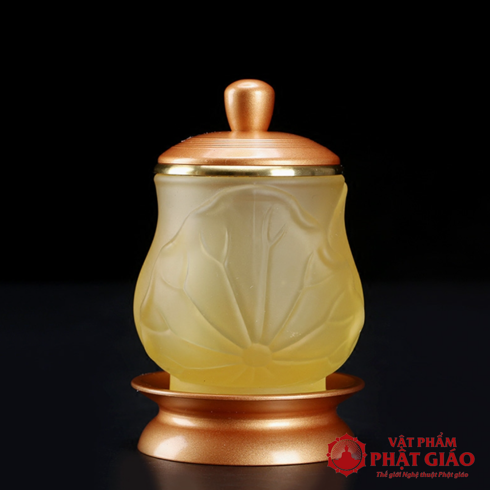 Chén Nước Thờ Có Nắp, Bằng Lưu Ly Bọc Đồng Lá Sen