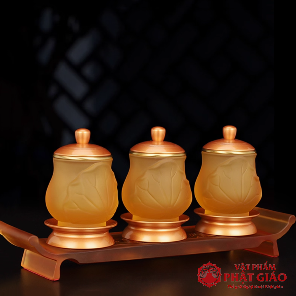• Thiết kế tối giản – thanh cao với hình ảnh lá sen uốn mềm mại bao quanh thân chén, phù hợp với mọi không gian thờ tự cổ điển hoặc hiện đại