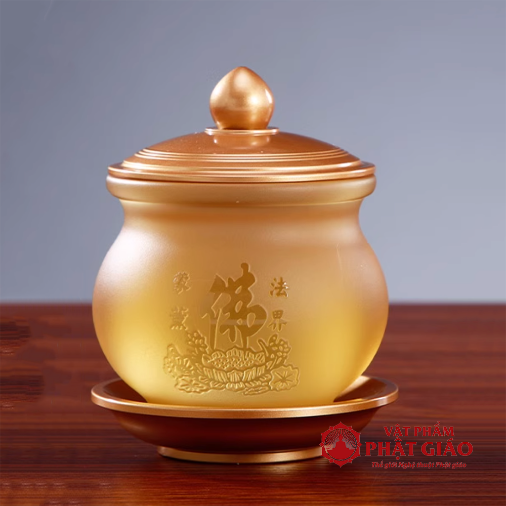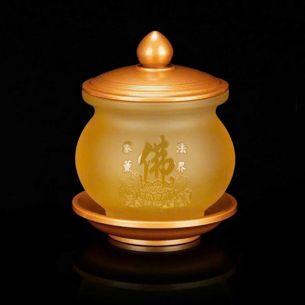 • Nắp và đế làm bằng đồng phủ ánh kim vàng cao cấp, tạo sự chắc chắn và trang nghiêm