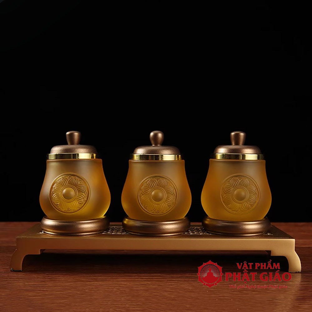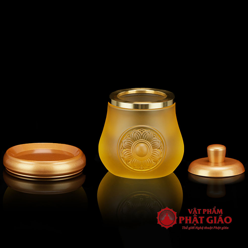 Chén Nước Thờ Lưu Ly Hoa Sen Bọc Đồng, Cao 8.4cm