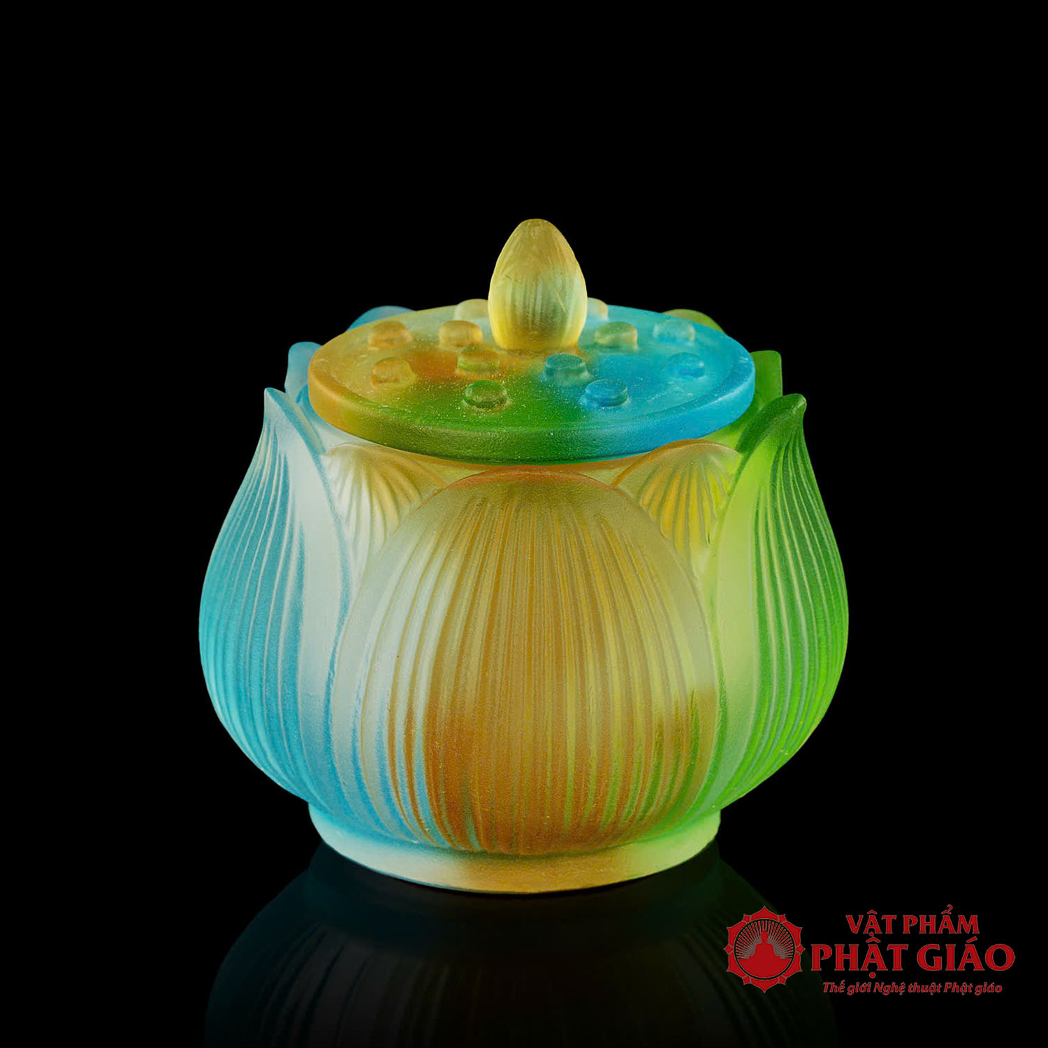 - Chất liệu: Chế tác từ lưu ly cao cấp, trong suốt và bền màu theo thời gian.