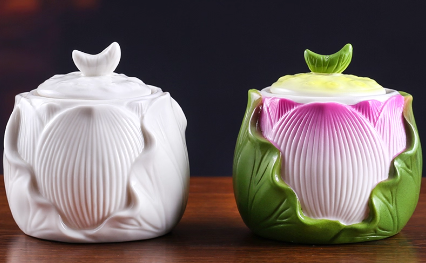 Cốc Đựng Nước Quan Âm Hình Búp Sen Gốm Sứ Trắng