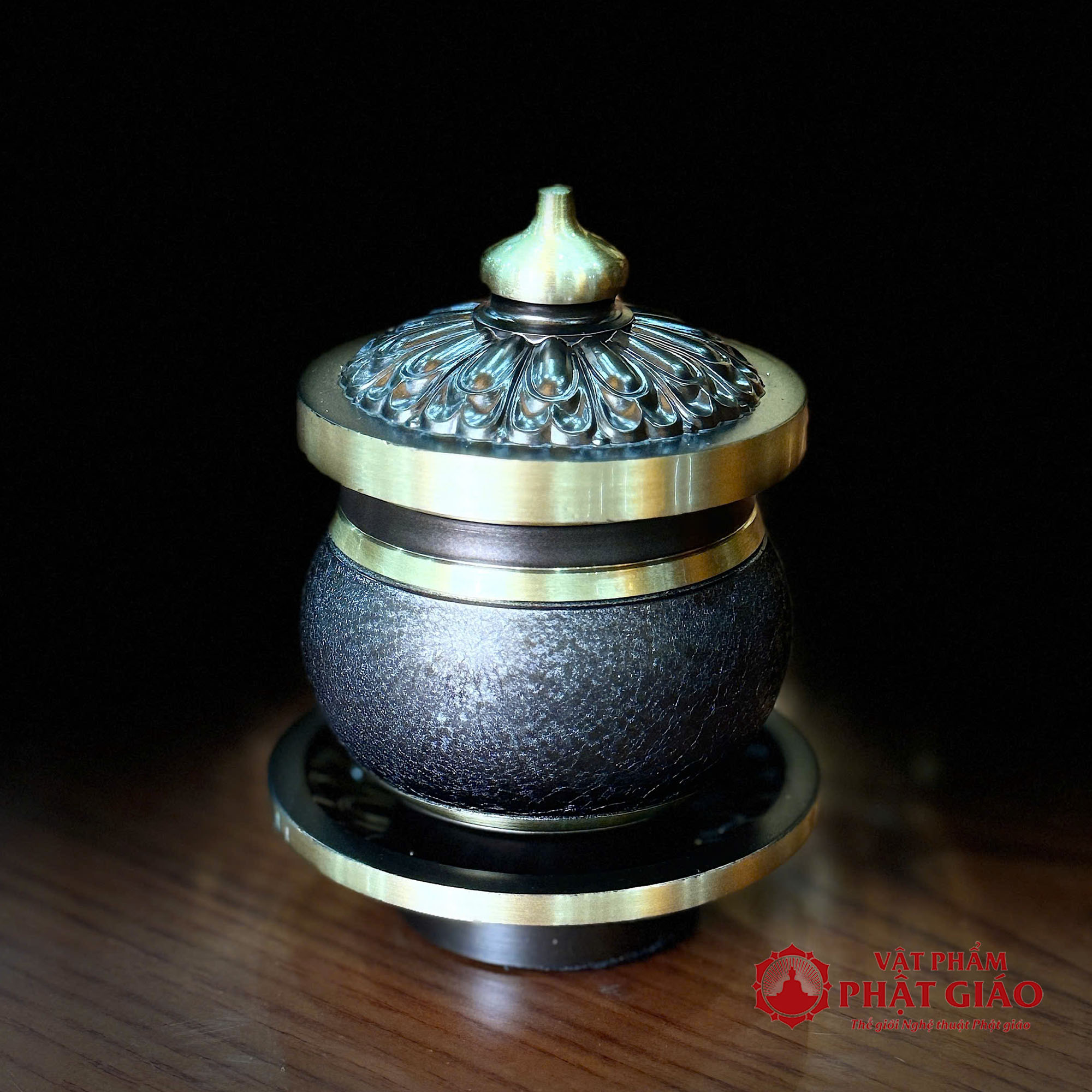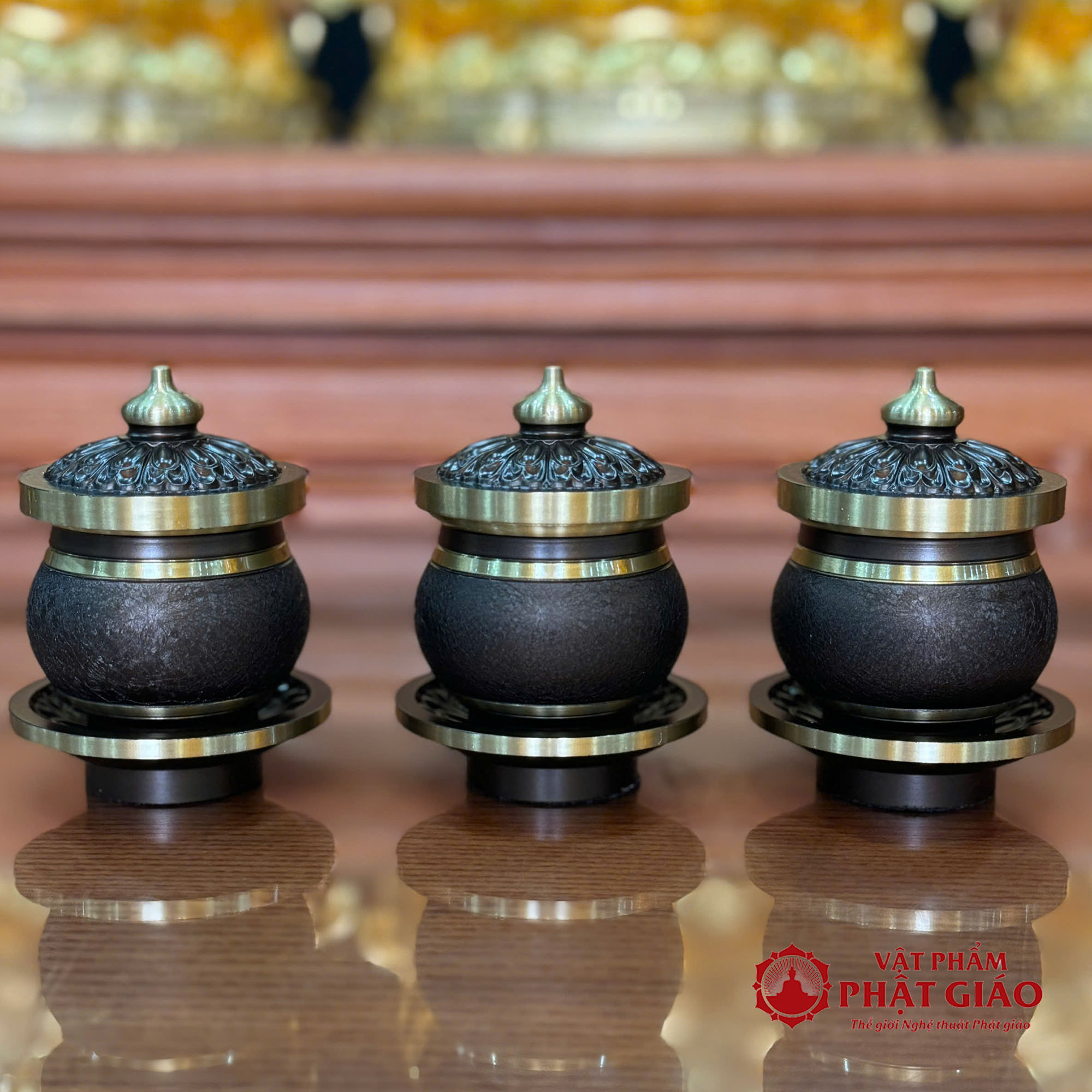 Cốc Nước Thờ Bằng Đồng Vân Đá Đen Sần Cao Cấp