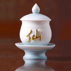 Cốc Nước Thờ Bằng Gốm Màu Trắng Xanh Chữ “Tiên”