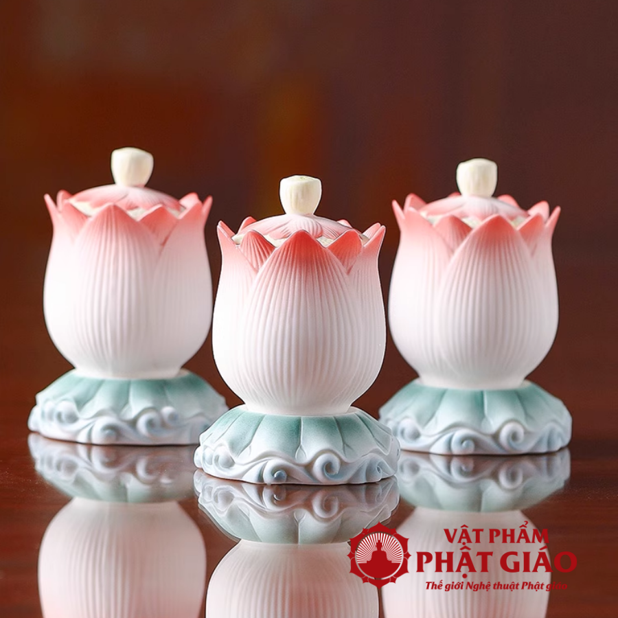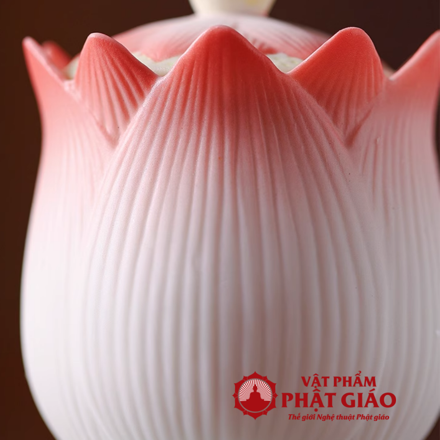 Cốc Nước Thờ Gốm Sứ Hình Búp Sen Hồng Cao 9.5cm