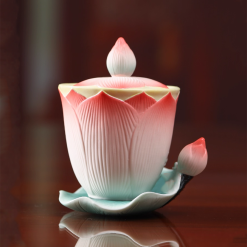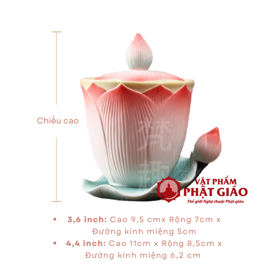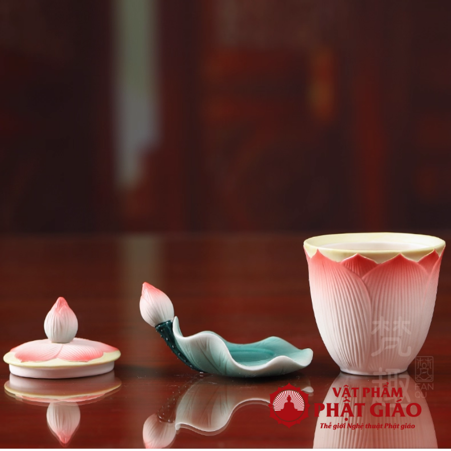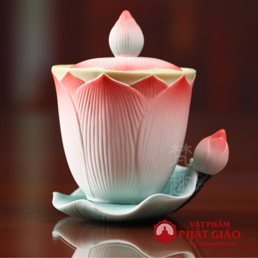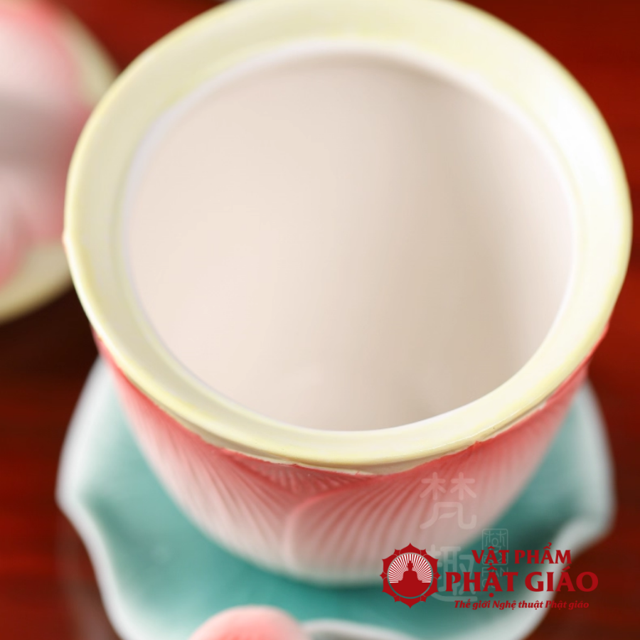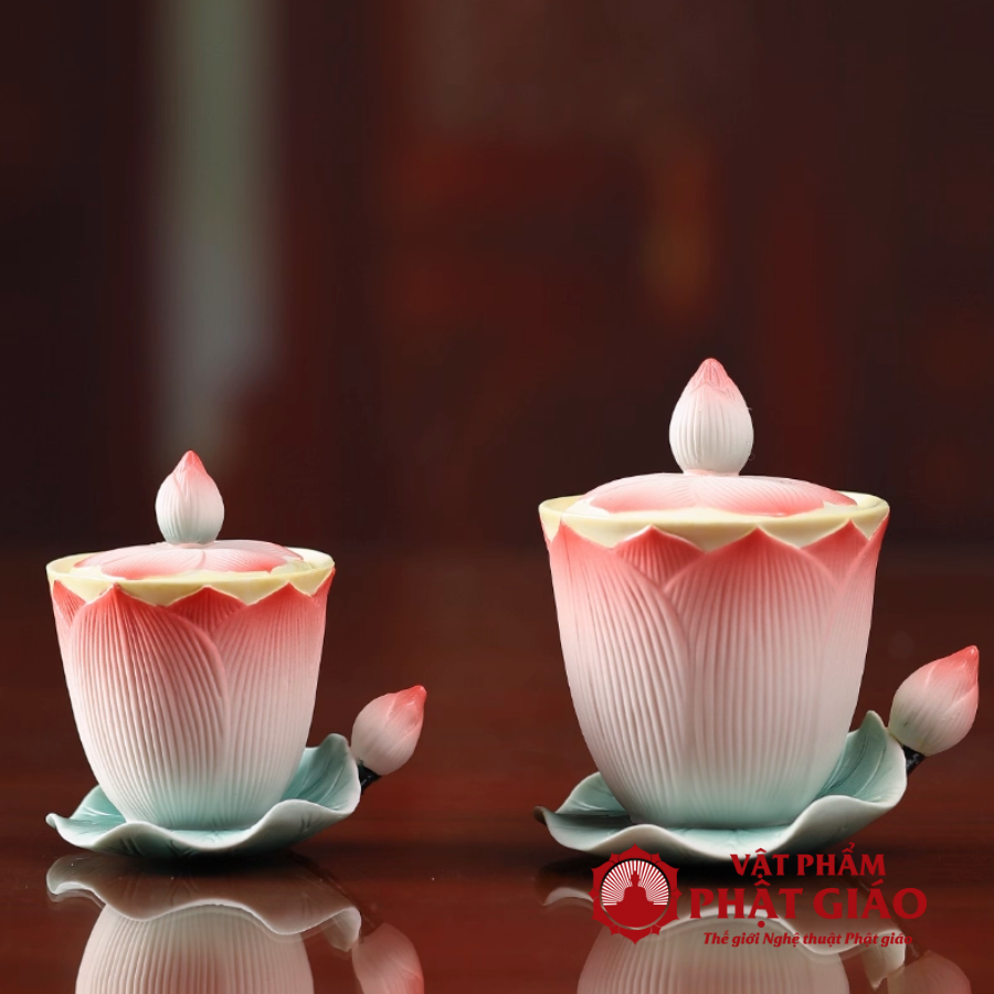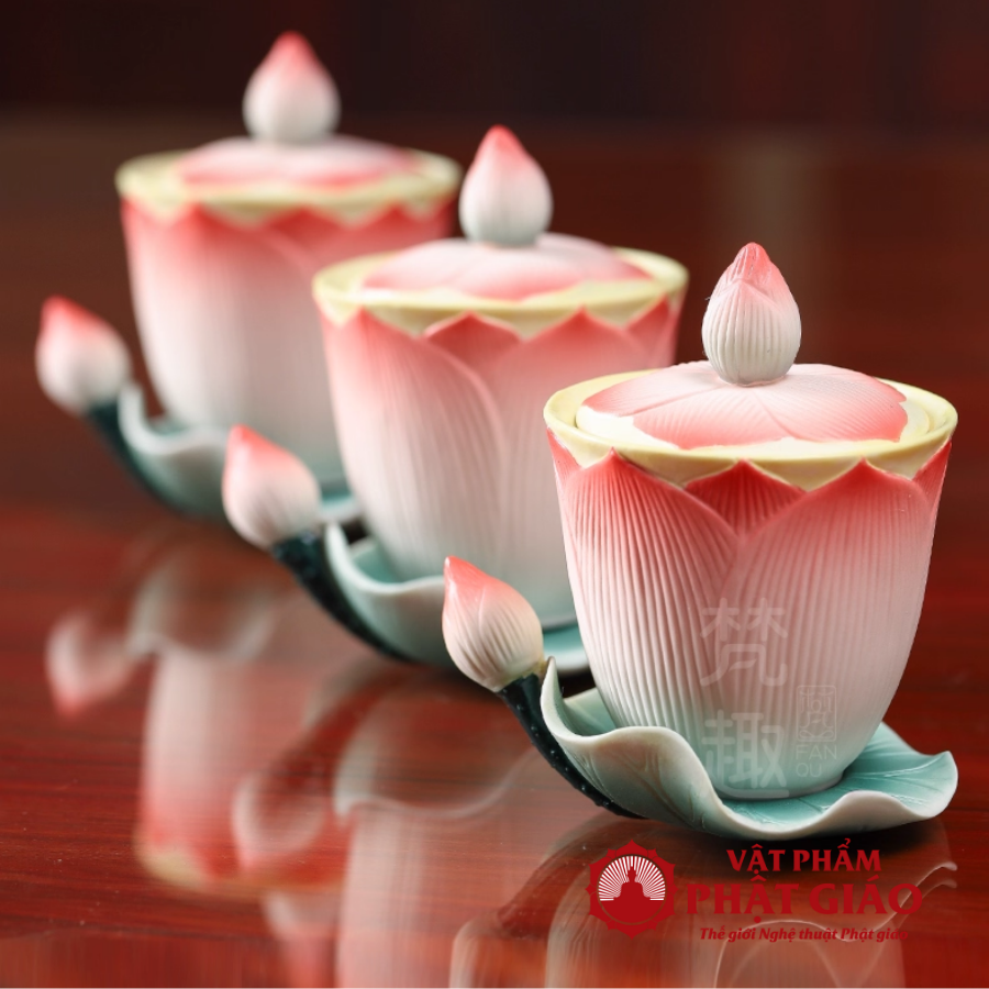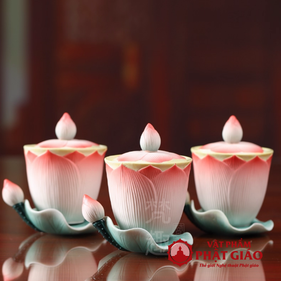Cốc Nước Thờ Gốm Sứ Hoa Sen Đế Lá Sen