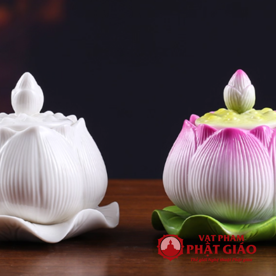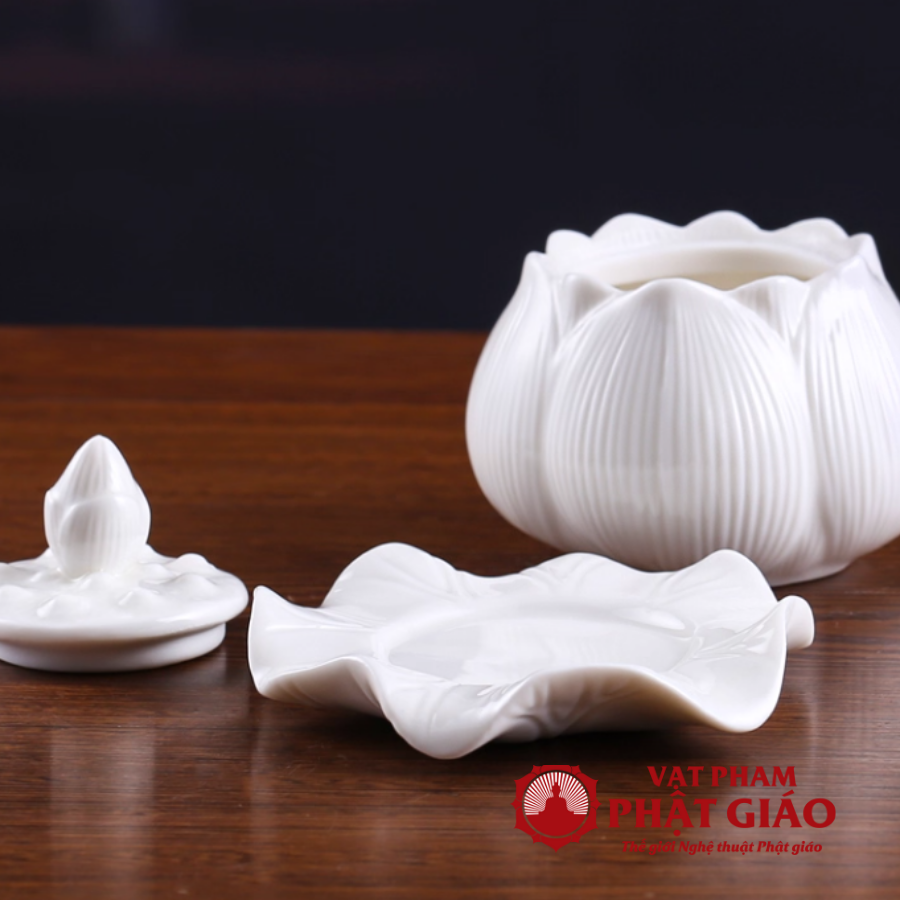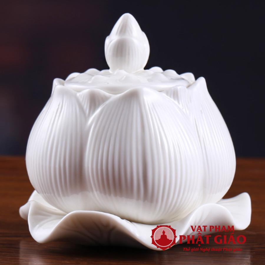 Chén Nước Thờ được chế tác theo hình búp sen trắng tinh tế, với đường nét bo tròn mềm mại, tạo cảm giác thanh thoát và trang nghiêm trên bàn thờ. Men gốm cao cấp giúp sản phẩm luôn sáng đẹp, bền lâu và dễ vệ sinh. Thiết kế nhỏ gọn, phù hợp với không gian thờ hiện đại và truyền thống.
