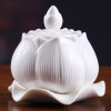 Cốc Nước Thờ Hình Búp Sen Bằng Gốm Sứ Trắng, Cao 9.5cm