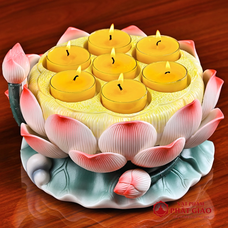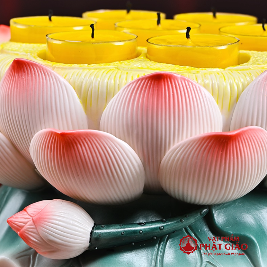 Thắp nến trên đế sen mang ý nghĩa thắp sáng trí tuệ, hướng tâm về điều thiện lành.