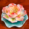 Đế Nến Gốm Sứ Hoa Sen Nở Lá Xanh 10cm