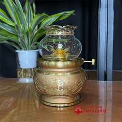 Đèn Dầu Chất Liệu Đồng Vàng Họa Tiết Hoa Sen Chữ Phật