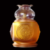 ● Thân đèn làm bằng lưu ly vàng hổ phách, tạo hình khối vuông chắc chắn, khắc nổi biểu tượng Bát Cát Tường ở bốn mặt