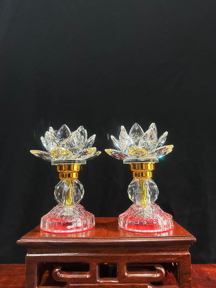 Đèn Hoa Sen Pha Lê Một Cục Tròn Nấc Vàng 18cm
