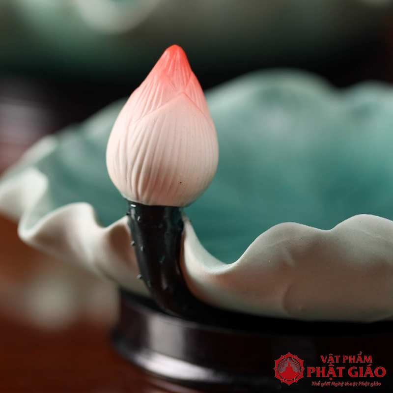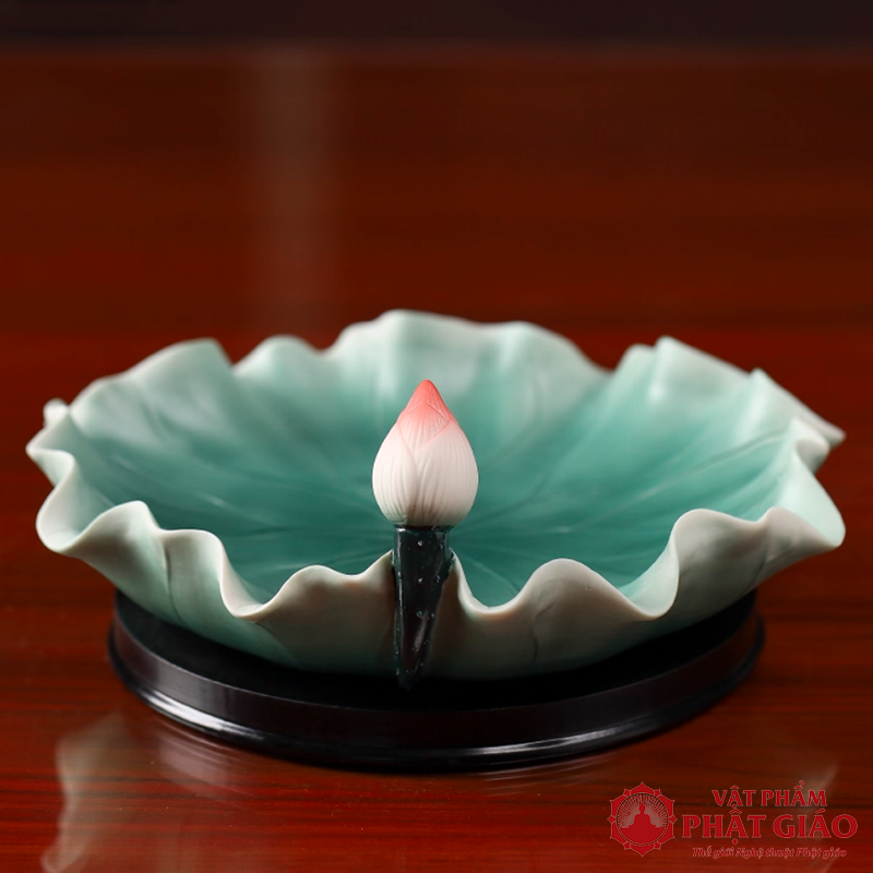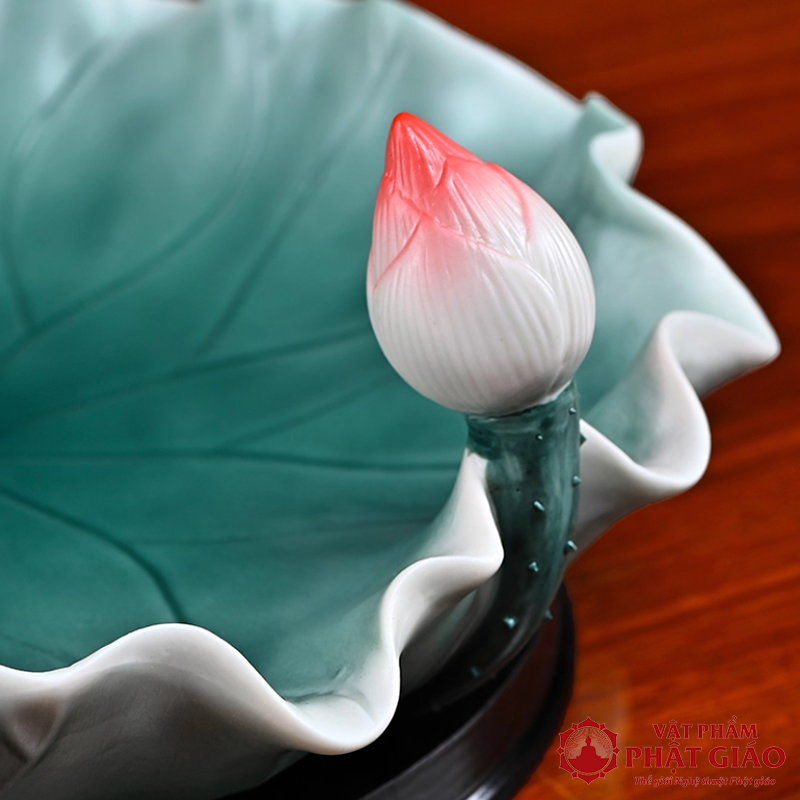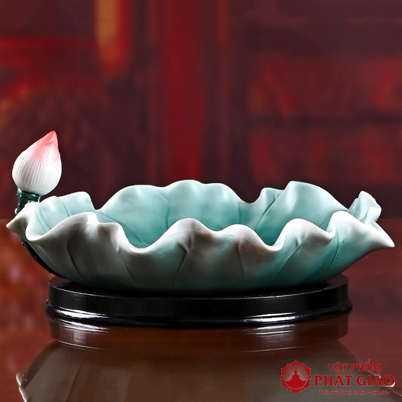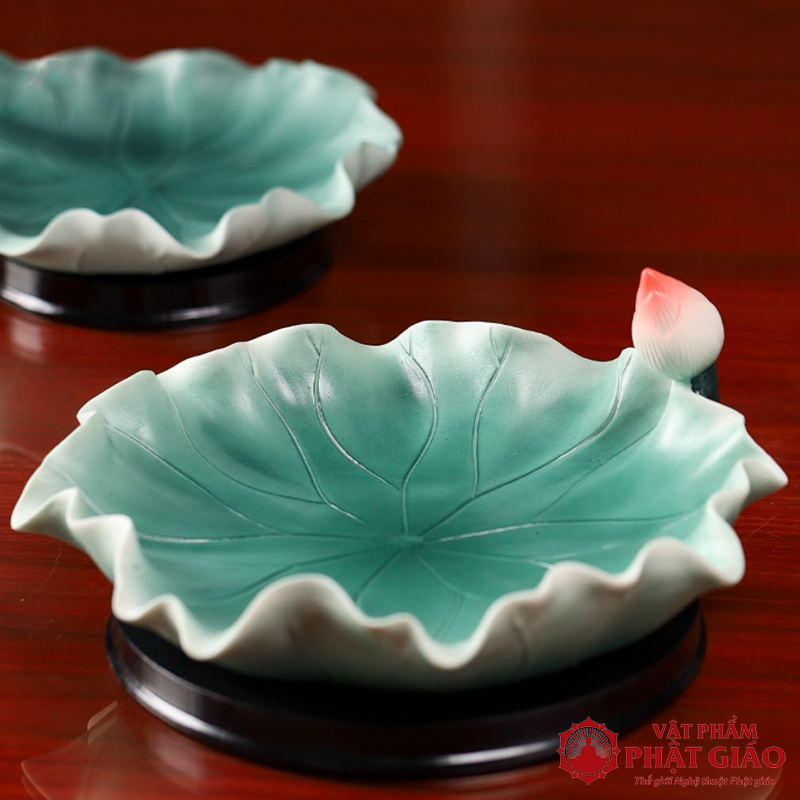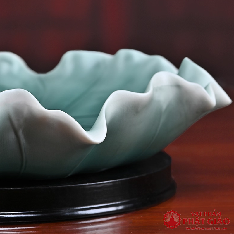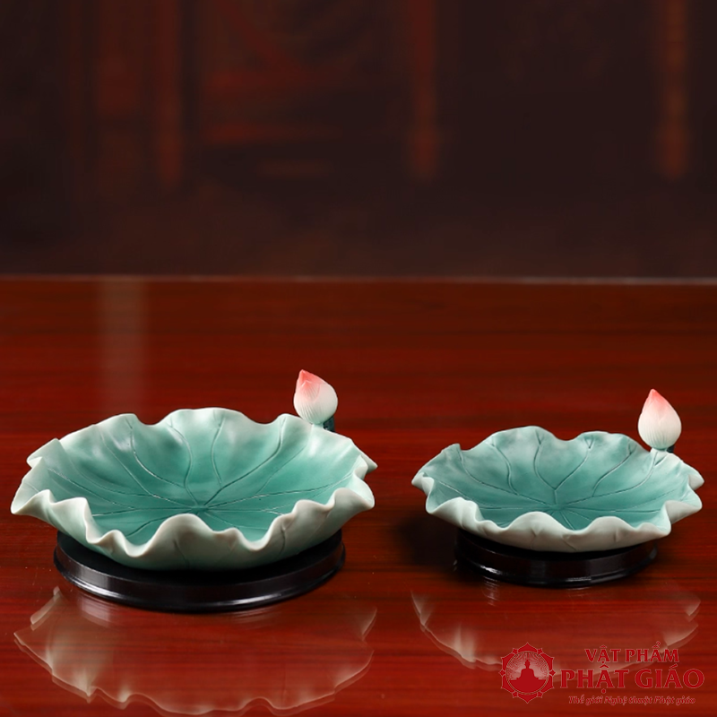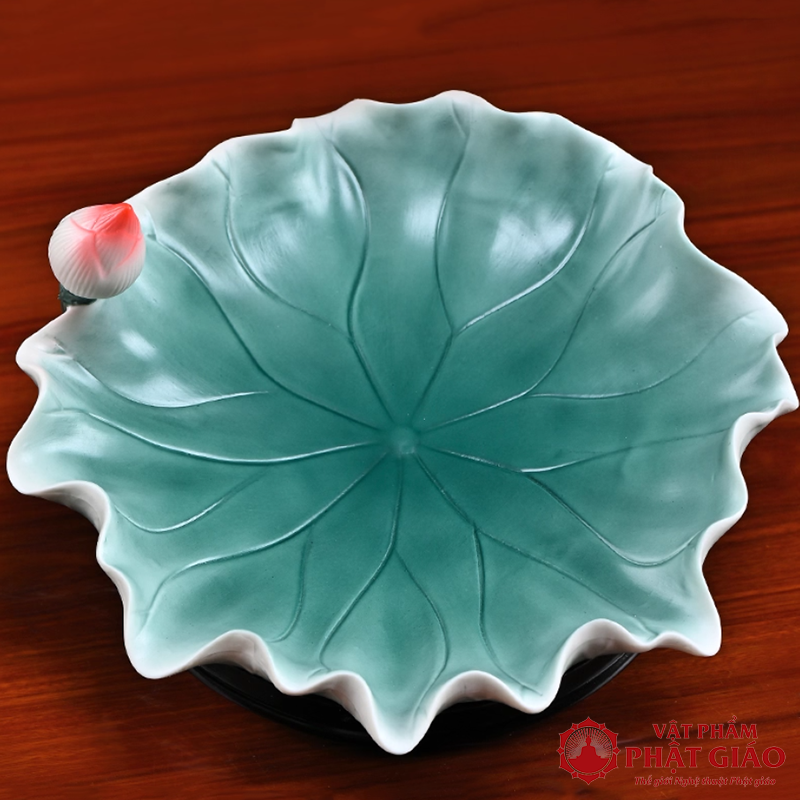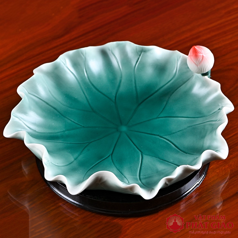 Đĩa Thờ (Mâm Bồng) Gốm Hình Lá Sen Cao Cấp, Đường Kính 23cm