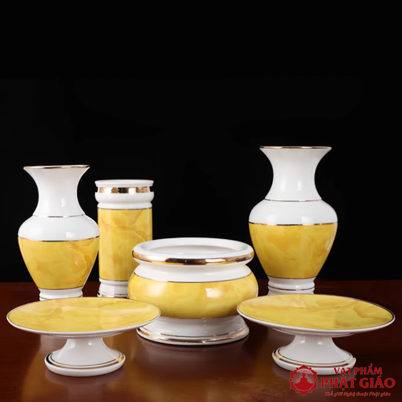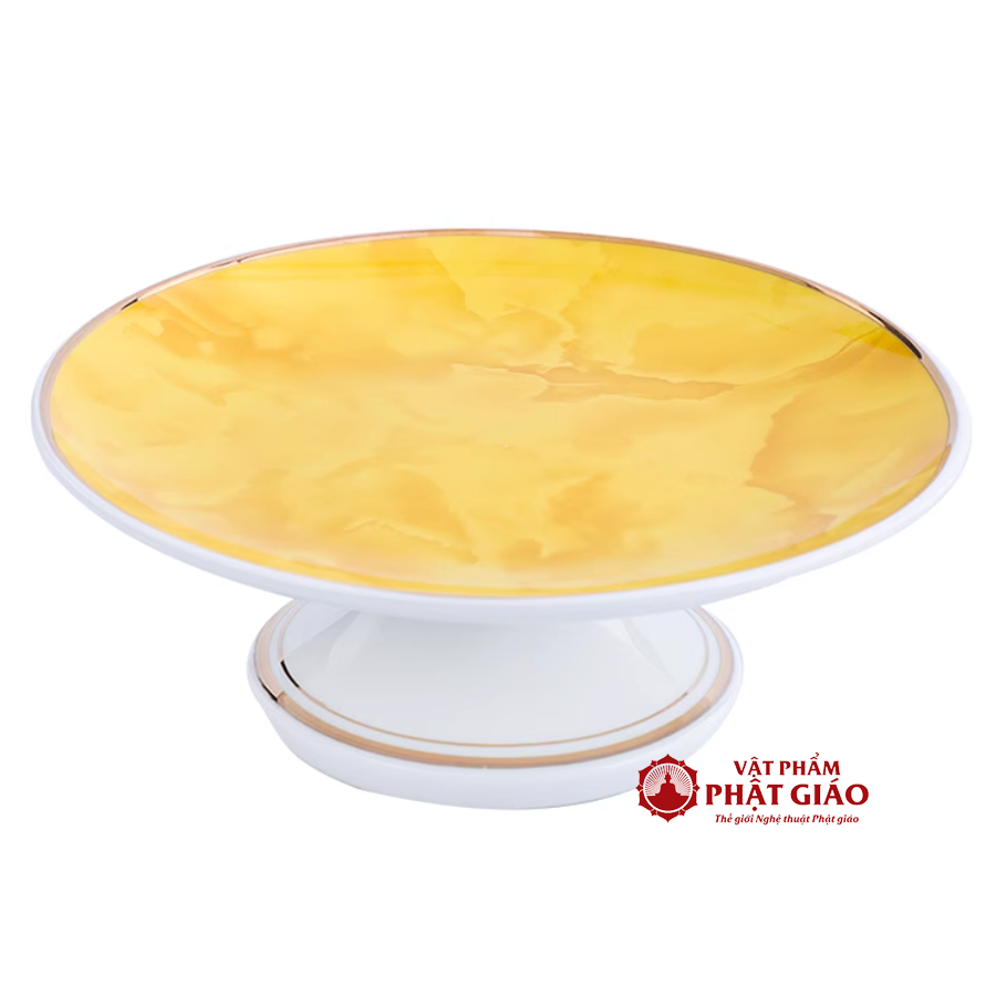 Đĩa Thờ (Mâm Bồng) Gốm Sứ Trắng Thạch Anh Vàng, Nhiều Kích Cỡ