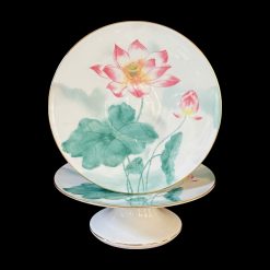 • Họa tiết: Hoa sen hồng và lá xanh được vẽ thủ công tinh xảo