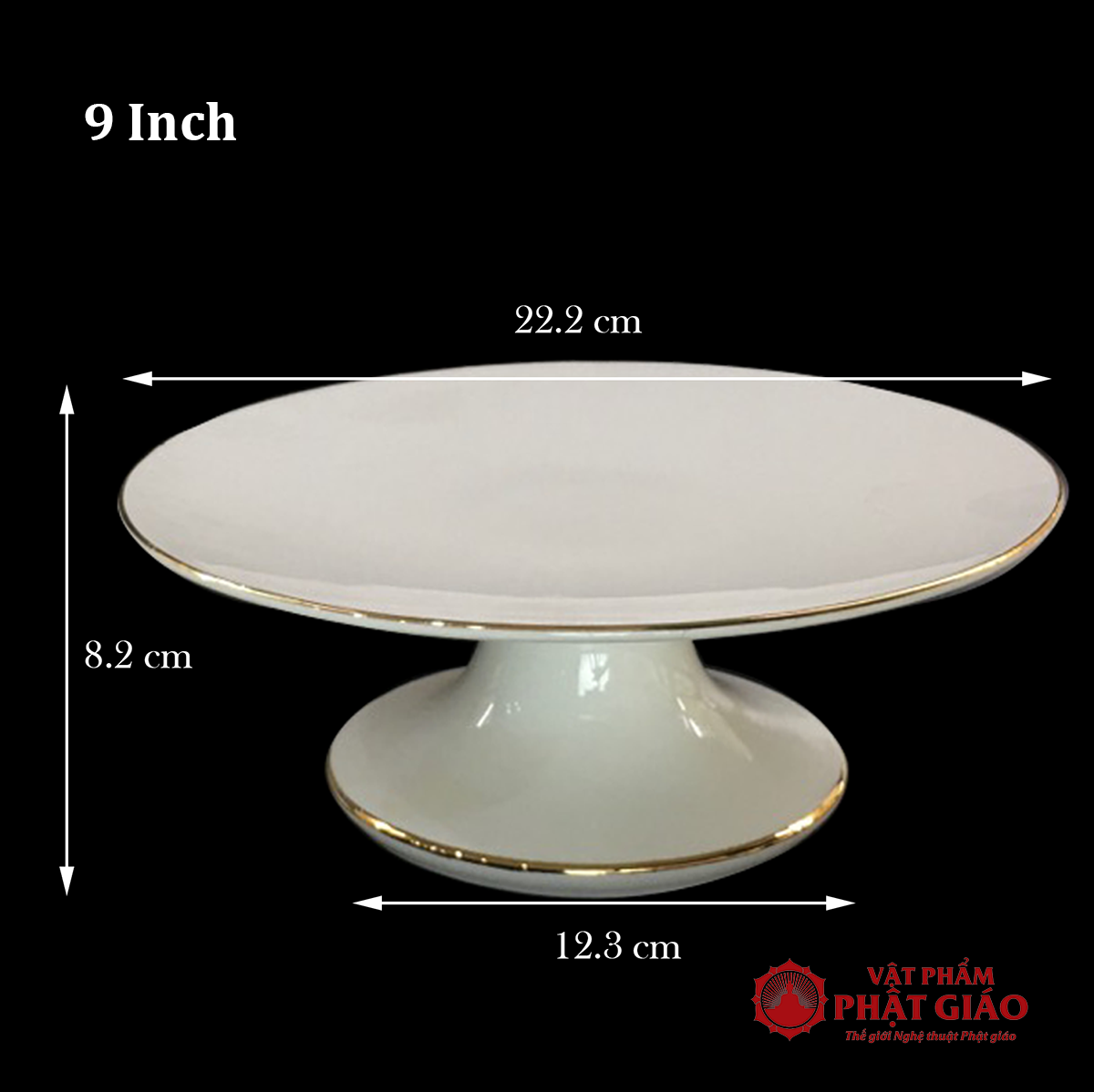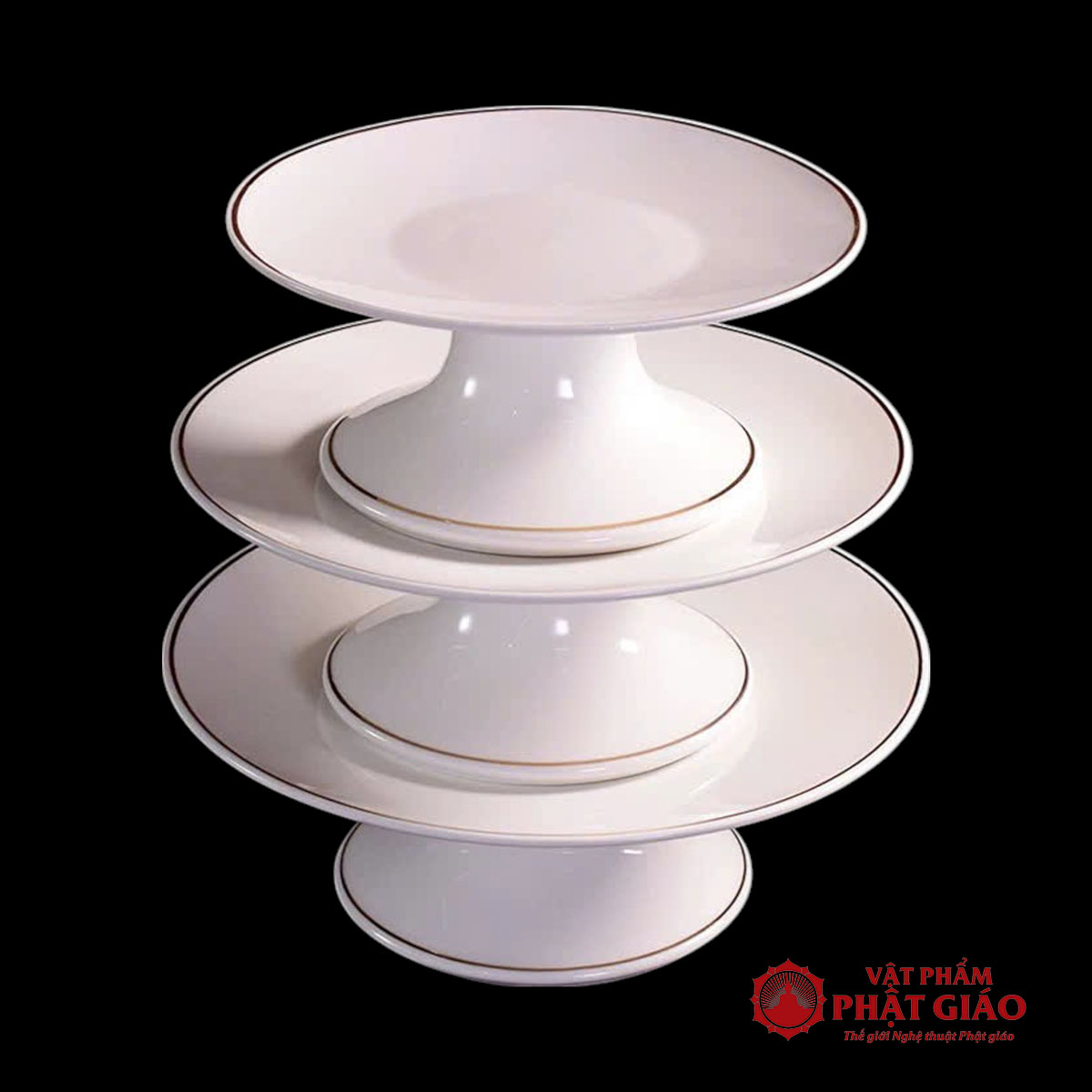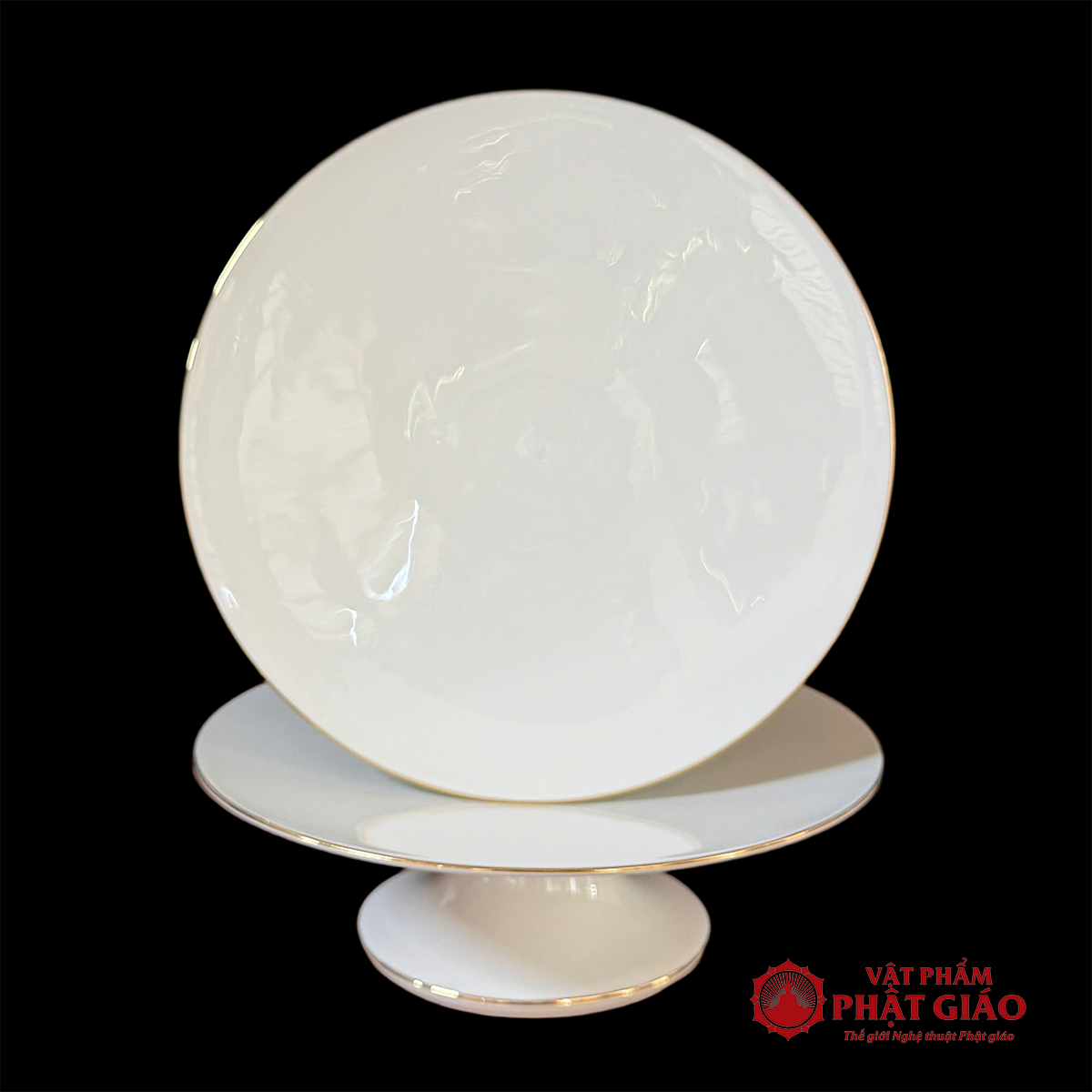 Đĩa Thờ Sứ Trắng Viền Vàng Cao Cấp, Nhiều Kích Cỡ
