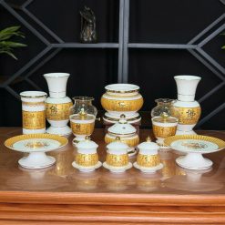 - Bộ đài thờ: Đây là vật phẩm không thể thiếu khi cúng bàn thờ. Bộ đài thờ có hình dáng và mẫu mã giống nhau gồm 3 cái với công dụng là đựng gạo, muối, nước.