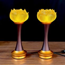 - Đôi đèn thờ: Đồ thờ cúng này được thiết kế đa dạng về mẫu mã, chất liệu, được sử dụng để thắp sáng bàn thờ bằng đèn điện hoặc đèn dầu.