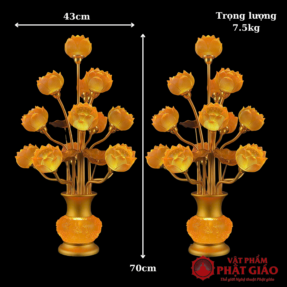 - Tên sản phẩm: Đôi Đèn Bình Thịnh Thế Hoa Khai Lưu Ly, 13 Bông Cụp