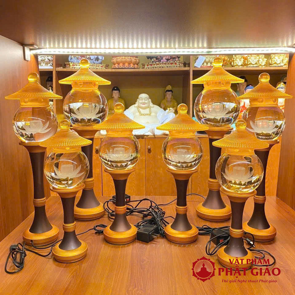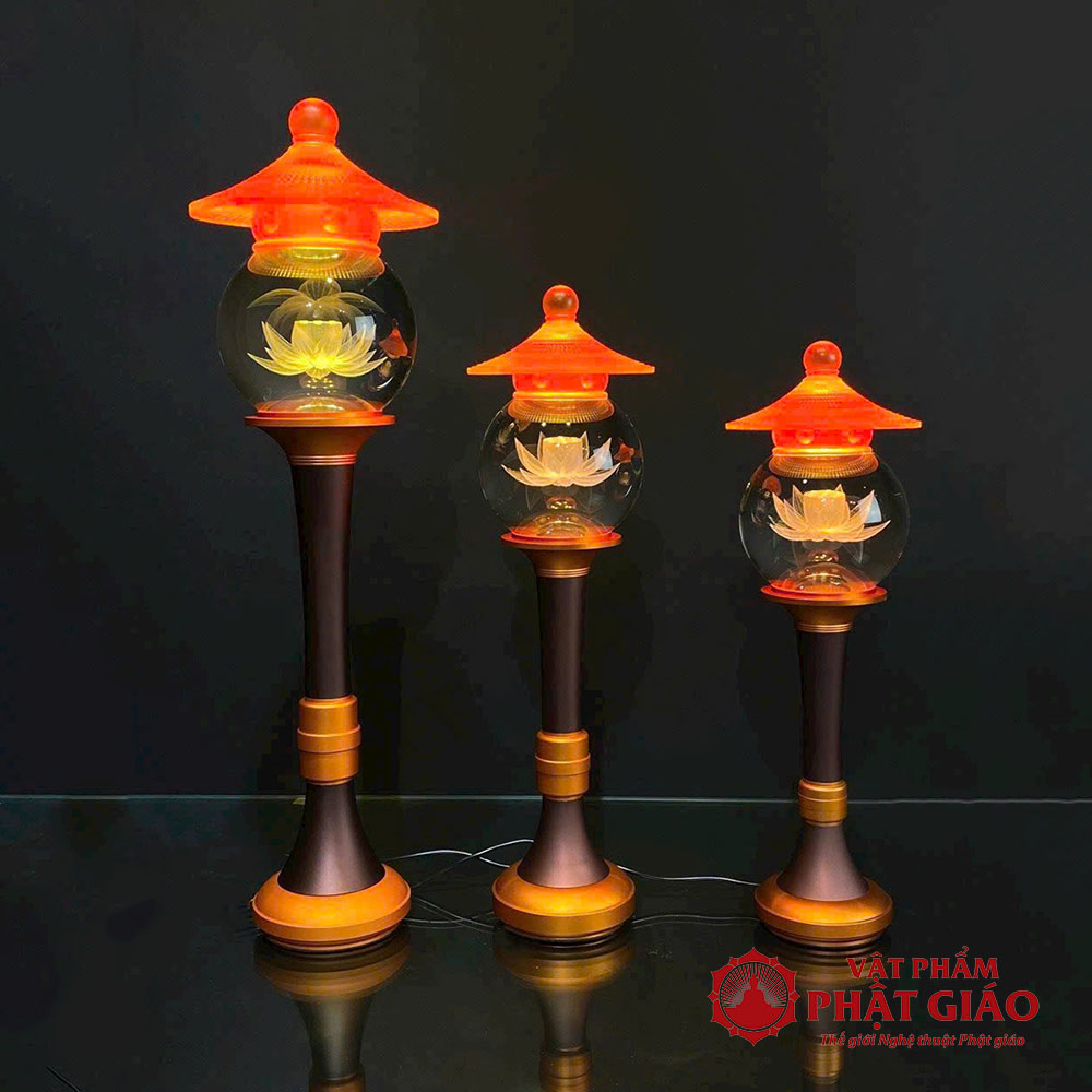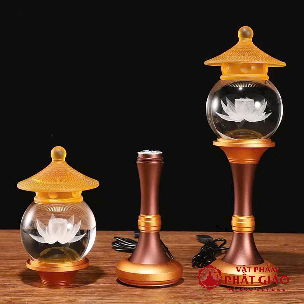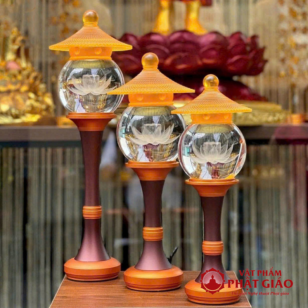 Đôi Đèn Cầu Hoa Sen Nắp Ô Thủy Lưu Ly, Nhiều Cỡ