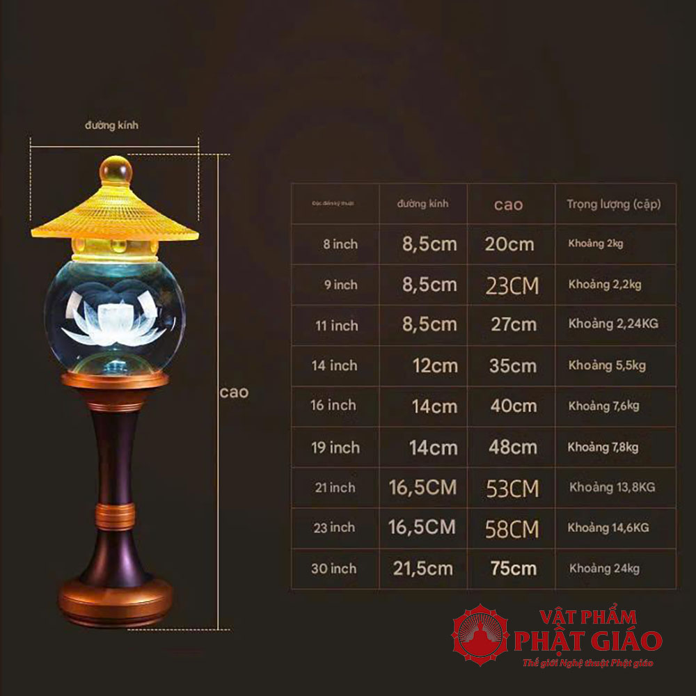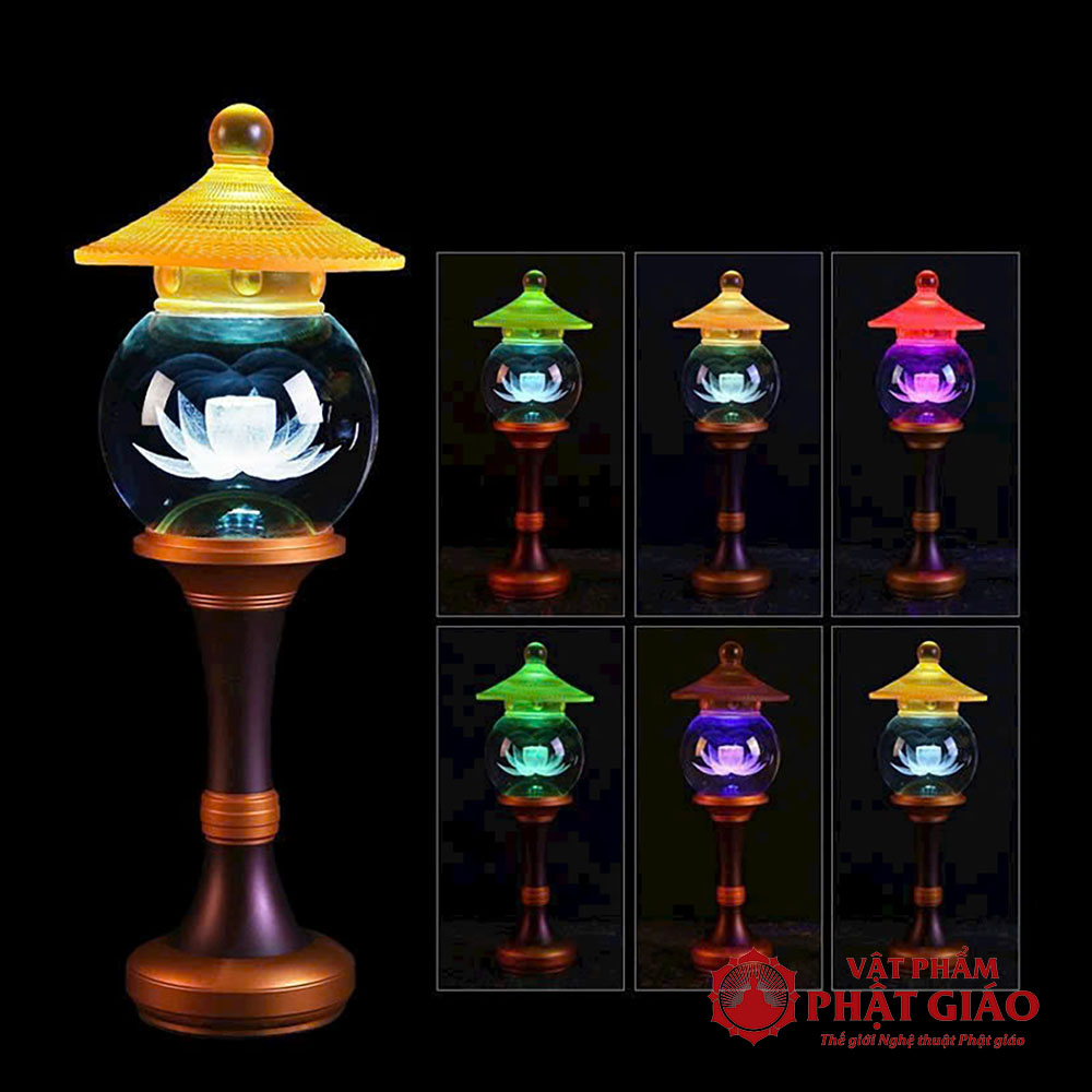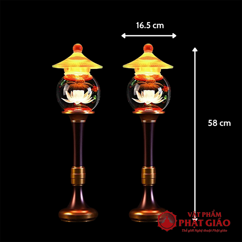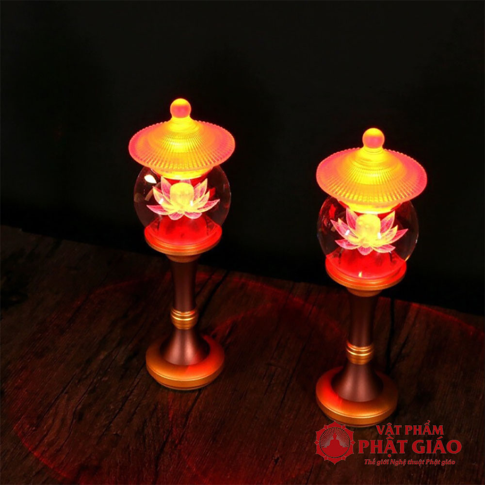 Đôi Đèn Cầu Hoa Sen Nắp Ô Thủy Lưu Ly, Nhiều Cỡ